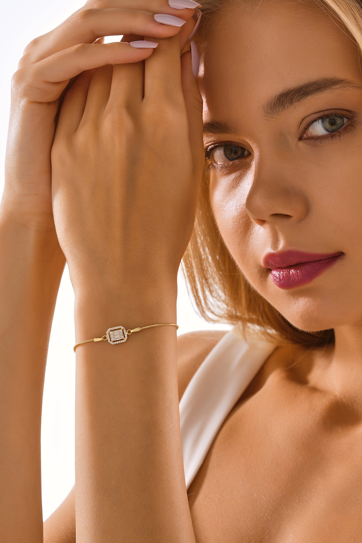 14 Ayar Altın Yılan Zincirli Baget Taşlı Bileklik 14 Ayar Altın Yılan Zincirli Baget Taşlı Bileklik VRBLK330029-MDL 21 cm