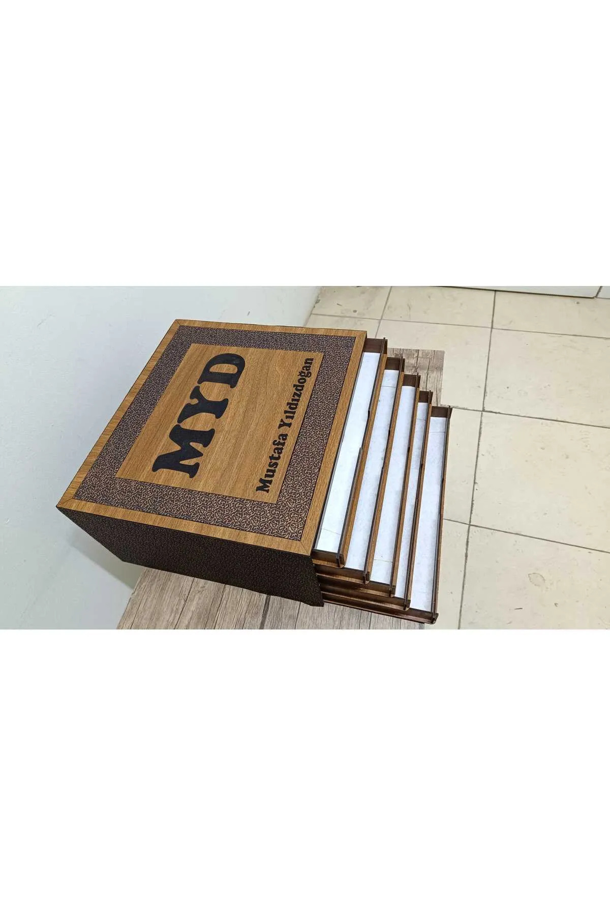 Kişiye Özel İsim Yazılabilir 5 katlı Çekmeceli Derili Ahşap Tesbih Bileklik ve Takı Kutusu Dolabı Kişiye Özel İsim Yazılabilir 5 katlı Çekmeceli Derili Ahşap Tesbih Bileklik ve Takı Kutusu Dolabı 5katlıderiili تک سایز