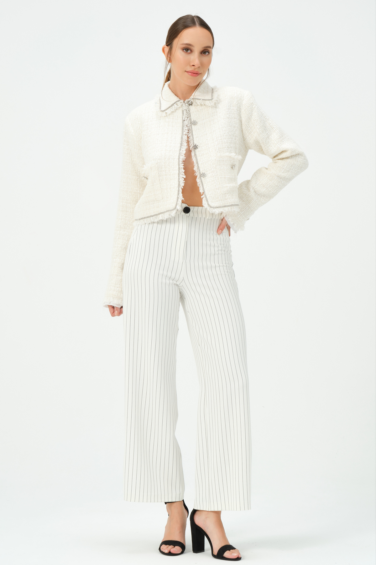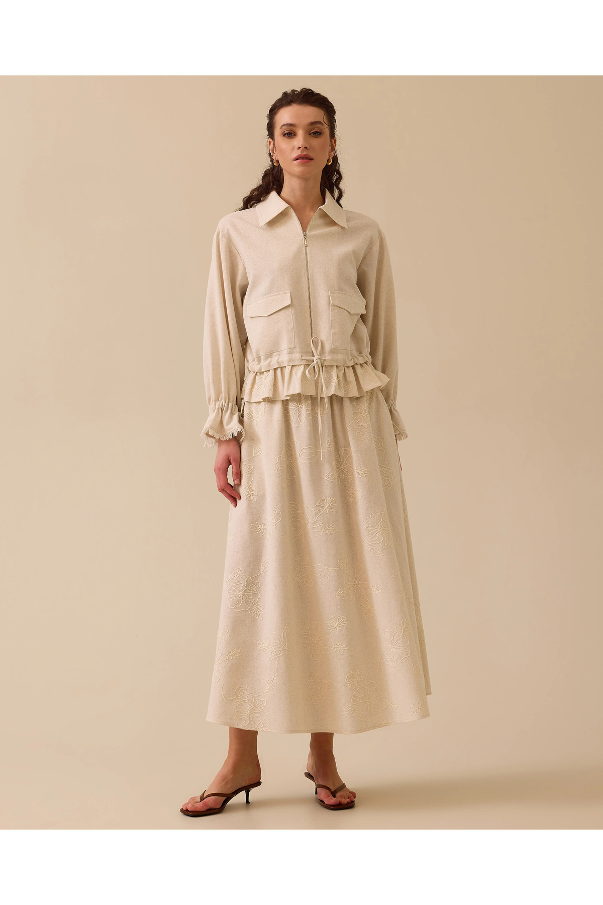 Keten Görünümlü Fırfır Detaylı Ceket Keten Görünümlü Fırfır Detaylı Ceket 10002511111019 42