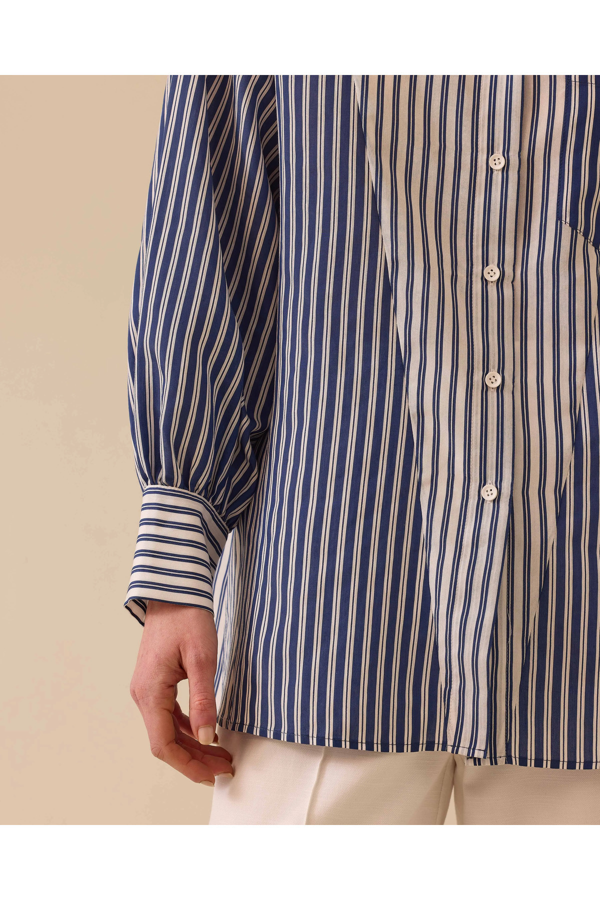 Çizgili Cep Detaylı Düğmeli Gömlek Çizgili Cep Detaylı Düğmeli Gömlek 10002511510018 44