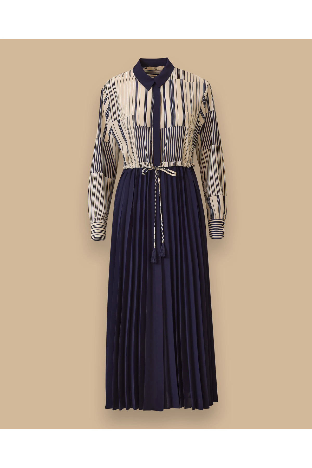 İki Parça Görünümlü Çizgili Pileli Gömlek Elbise İki Parça Görünümlü Çizgili Pileli Gömlek Elbise TYC1315D30BDC254A83180900 44
