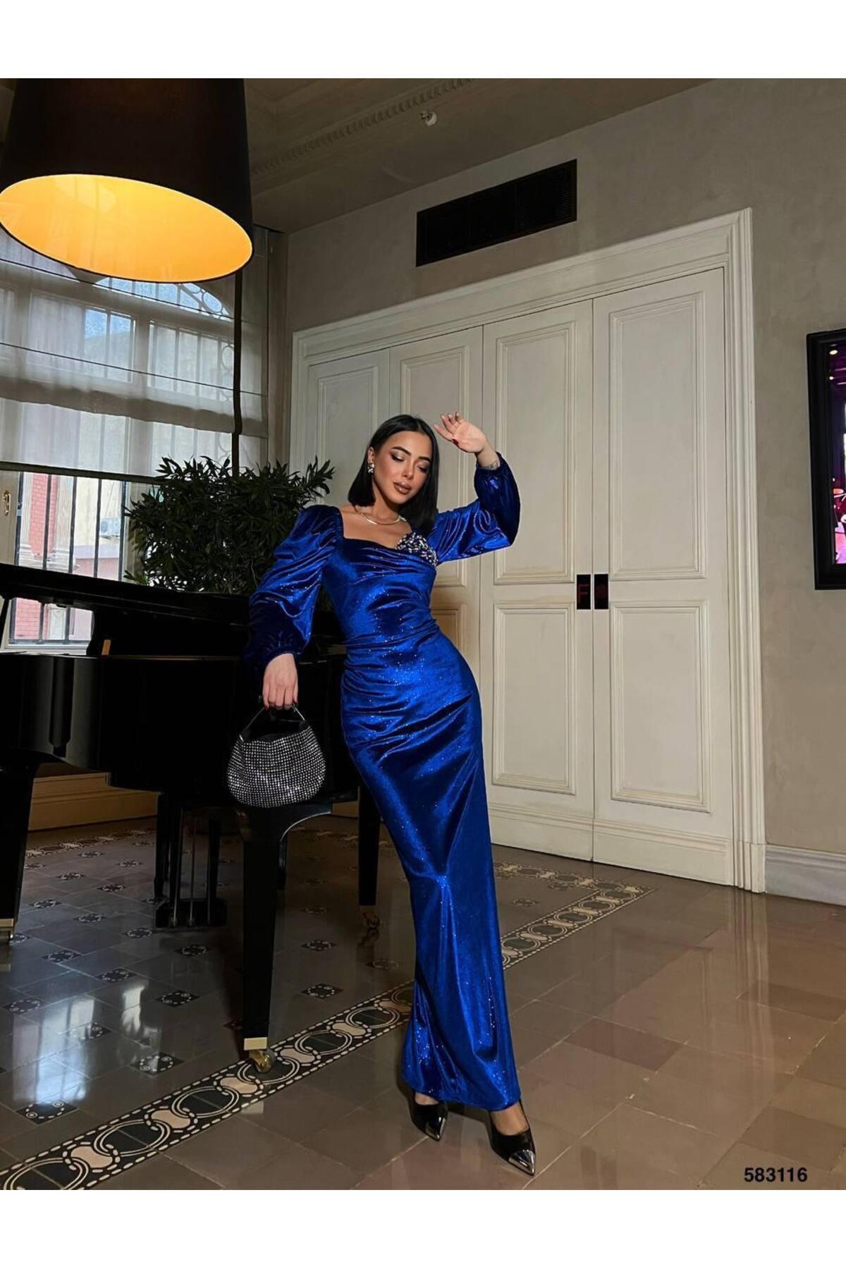 Tek Göğüs Taşlı Simli Kadife Abiye Elbise Siyah 583116 Tek Göğüs Taşlı Simli Kadife Abiye Elbise Siyah 583116 L