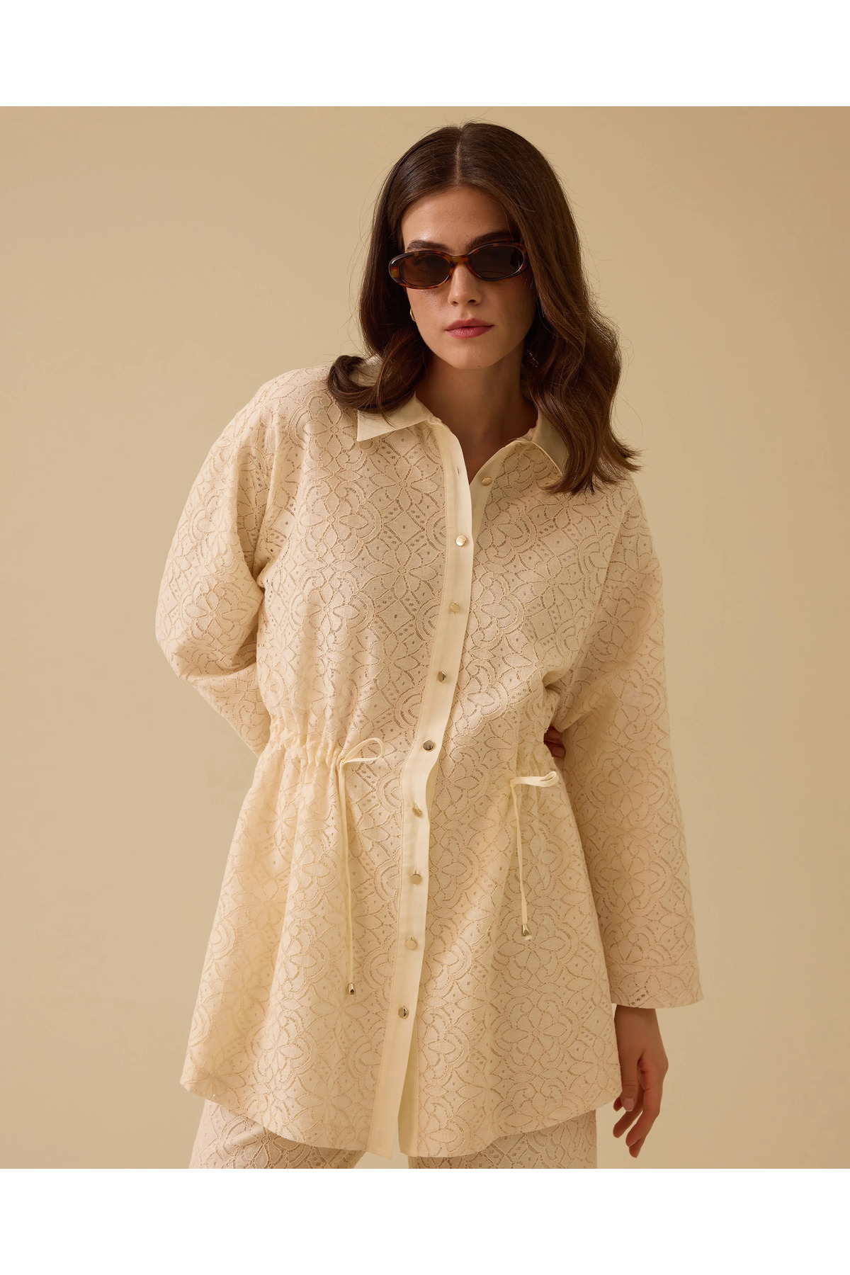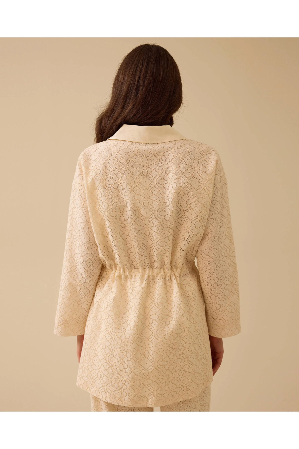 Desenli Beli Büzgülü Dantel Ceket Desenli Beli Büzgülü Dantel Ceket 10002511111024 44