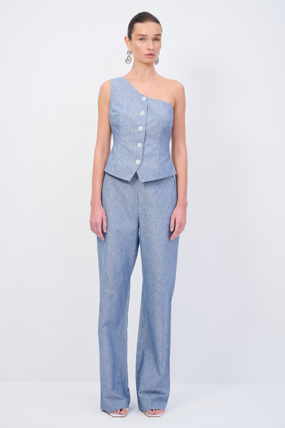 Moda Tutkusu Tek Omuz Çizgili Keten Yelek Moda Tutkusu Tek Omuz Çizgili Keten Yelek 179M2194000 42