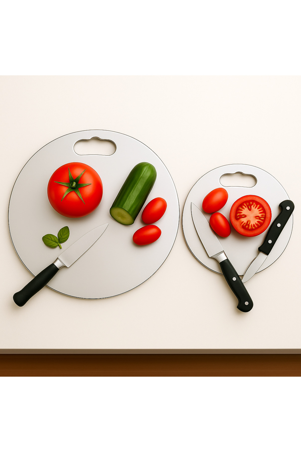 Paslanmaz Çelik 2'li Yuvarlak Mutfak Kesme-Doğrama Tahtası (Antibakteriyel) Paslanmaz Çelik 2'li Yuvarlak Mutfak Kesme-Doğrama Tahtası (Antibakteriyel) Lilasso-205 تک سایز