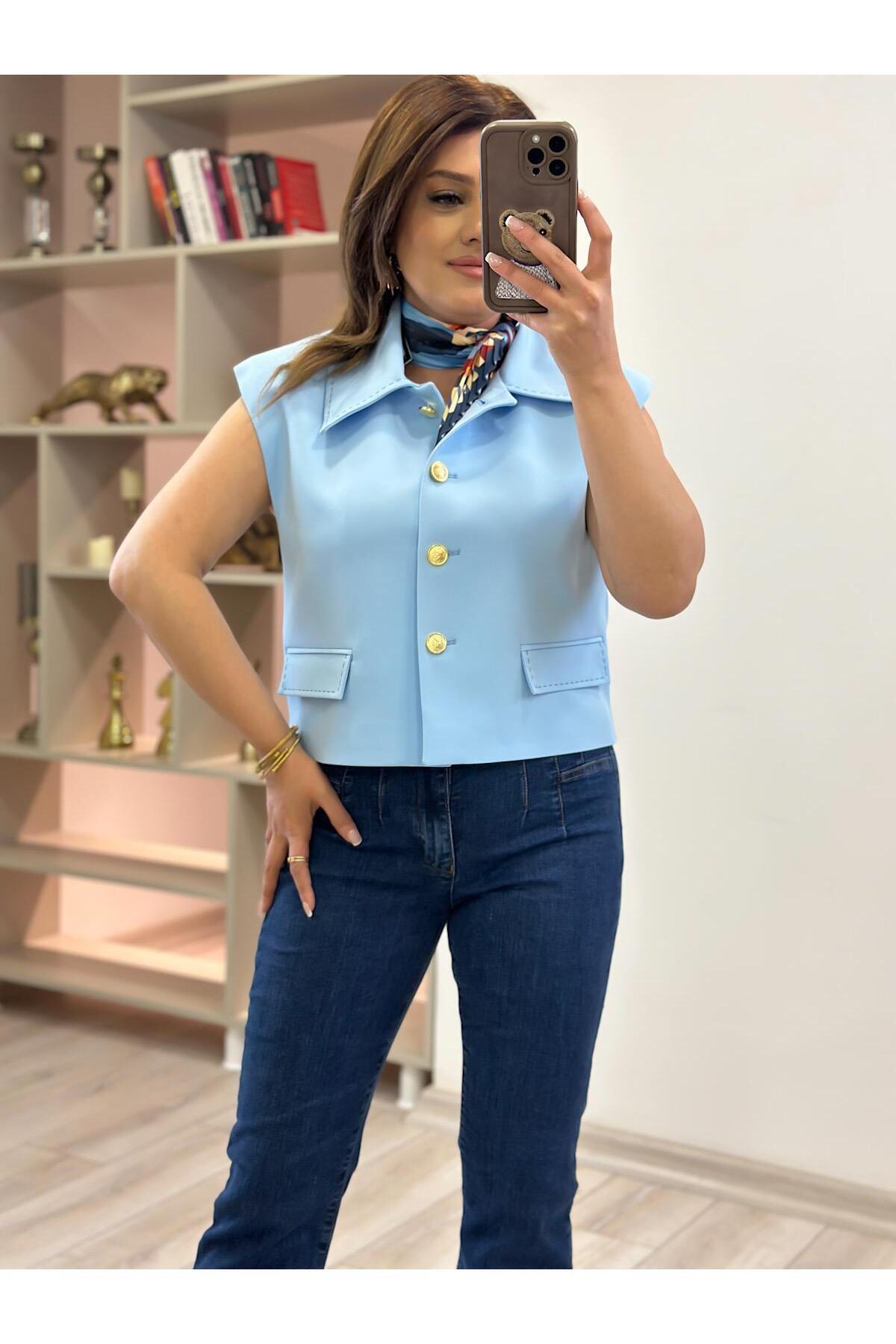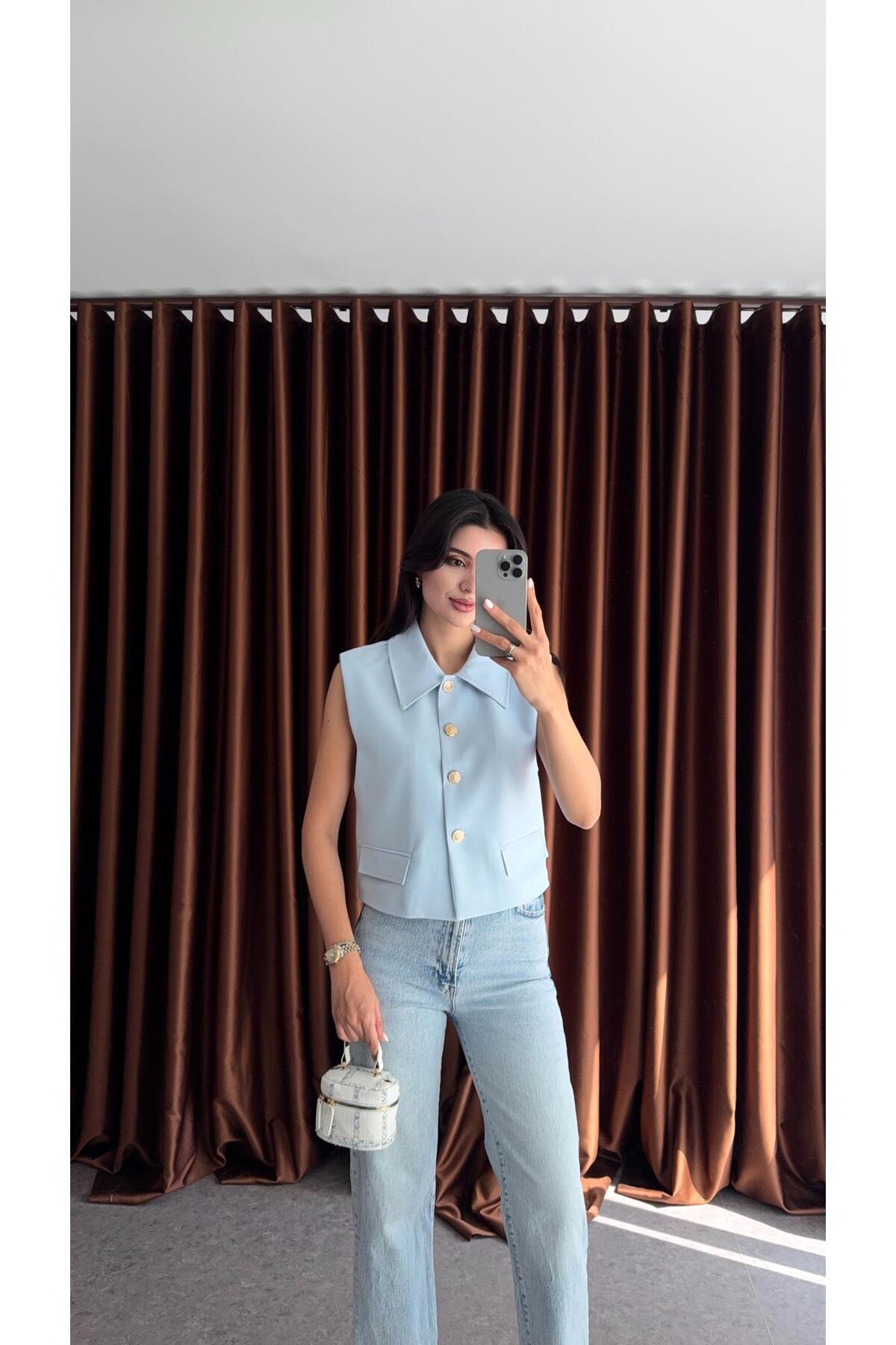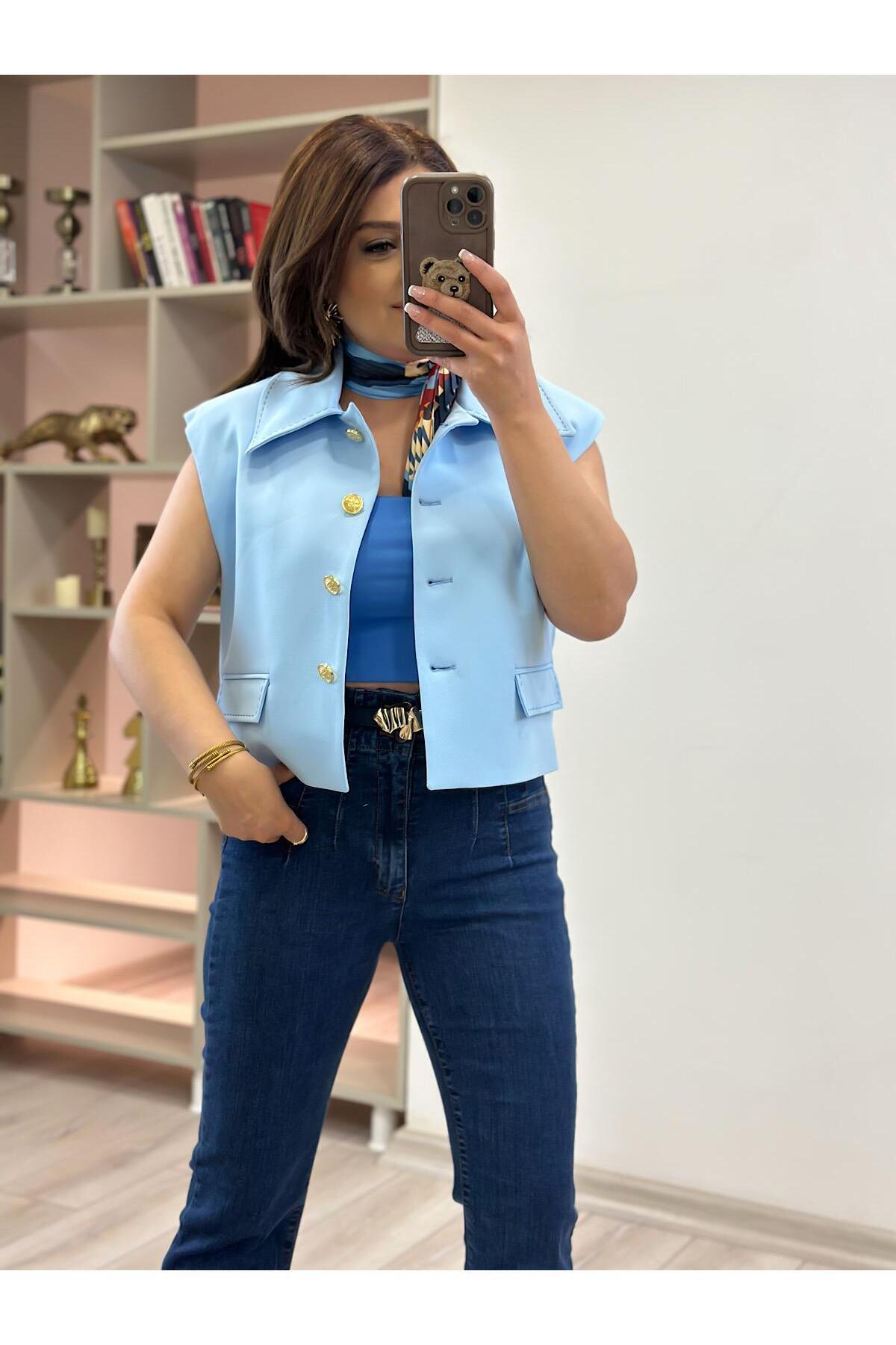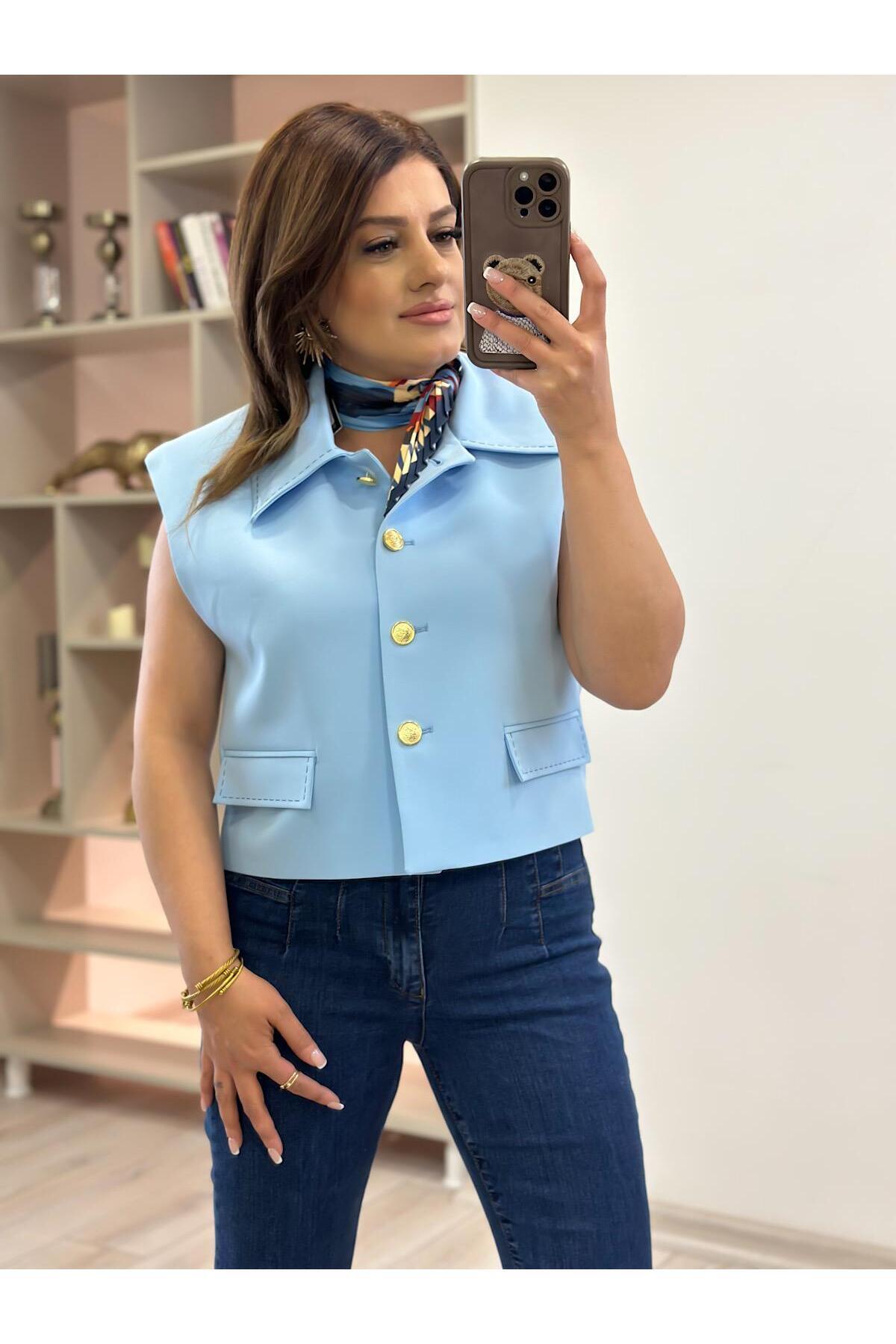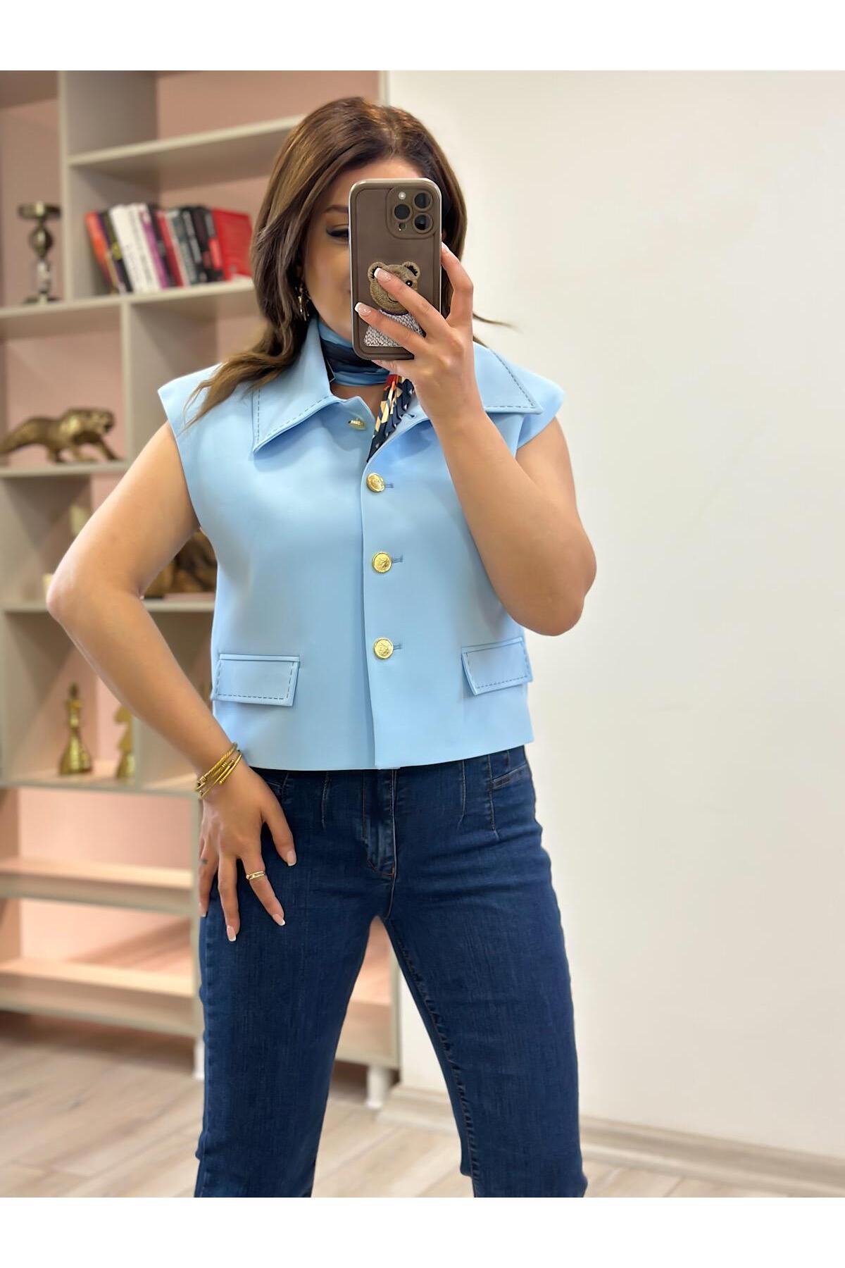 Dikiş Detay Vatkalı Yelek BEBE MAVİ Dikiş Detay Vatkalı Yelek BEBE MAVİ 23YDIS000011 L