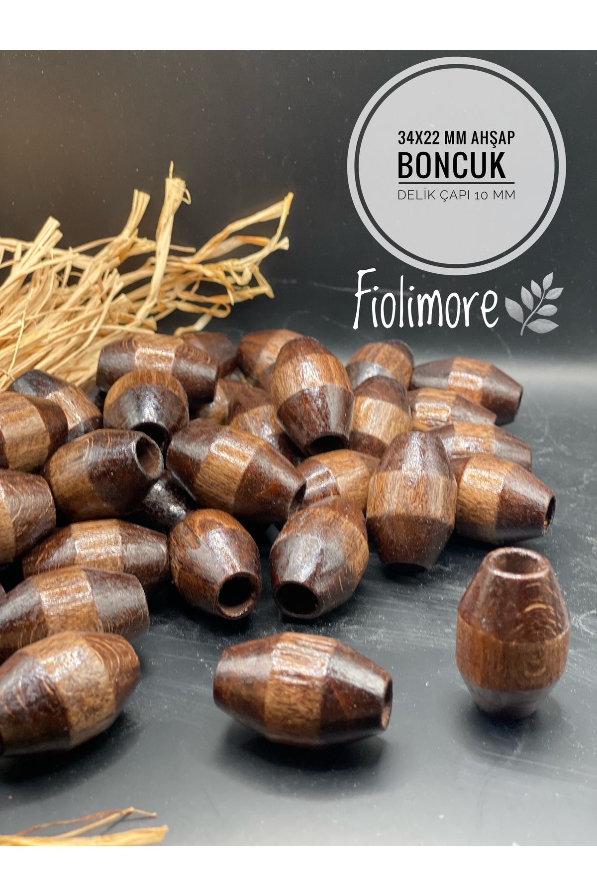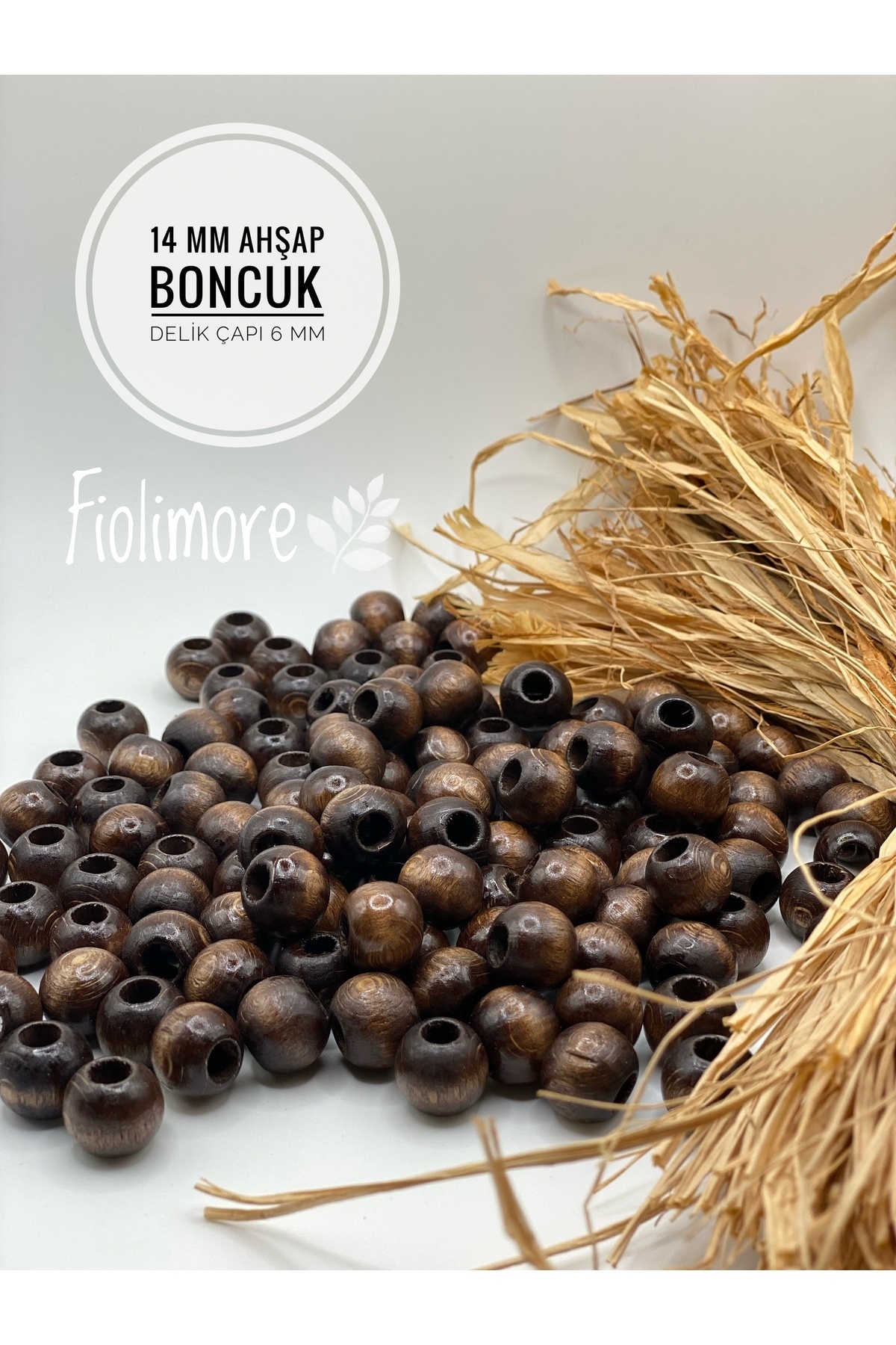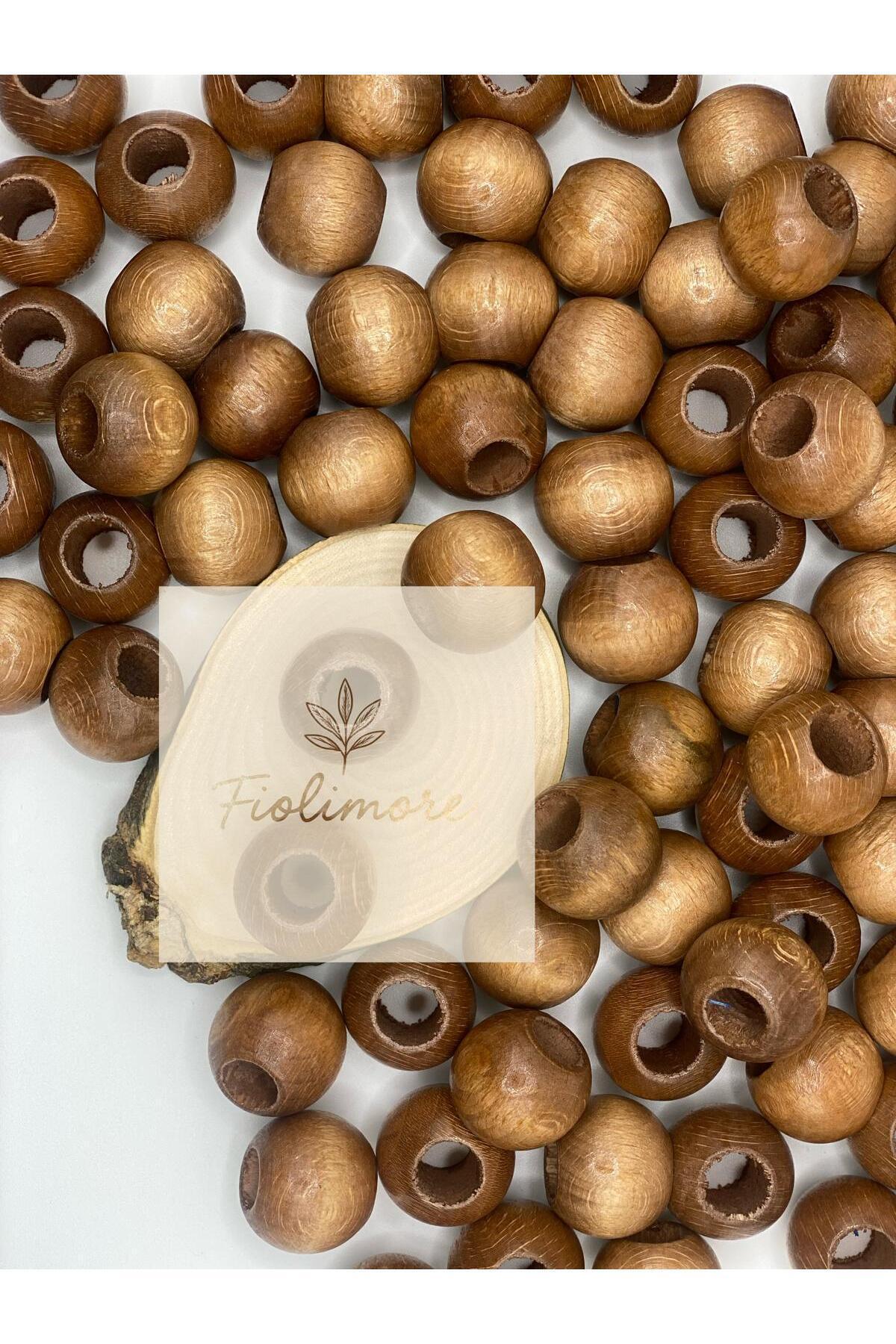 Sütlü Kahve Makrome Ahşap Boncuk 22 mm(50 Gram 15 Adet)Geniş Delik Çapı 10 mm Yuvarlak Renkli Boncuk sütlü kahve 22mm