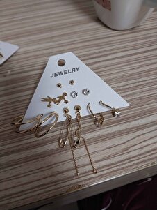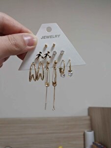 GOLD KADIN ÇELİK KÜPE SETİ GOLD KADIN ÇELİK KÜPE SETİ 6lıküpesetigold تک سایز