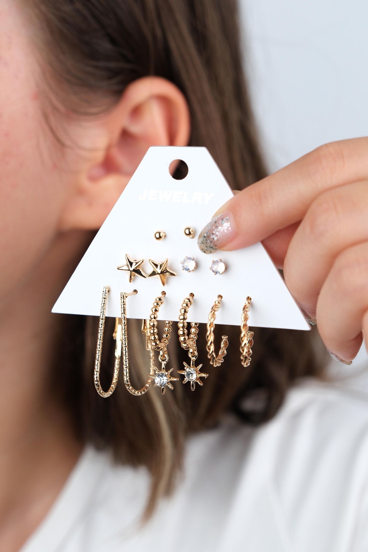 GOLD KADIN ÇELİK 6'LI KÜPE SETİ GOLD KADIN ÇELİK 6'LI KÜPE SETİ 6lıküpesetigold تک سایز