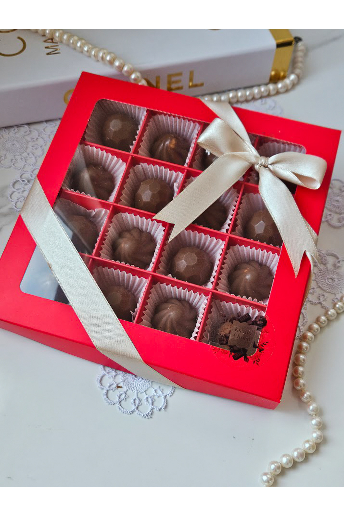Sütlü Belçika çikolatasında, el yapımı Fındıkli lezzet kutusu Sütlü Belçika çikolatasında, el yapımı Fındıkli lezzet kutusu KC-FK2 تک سایز