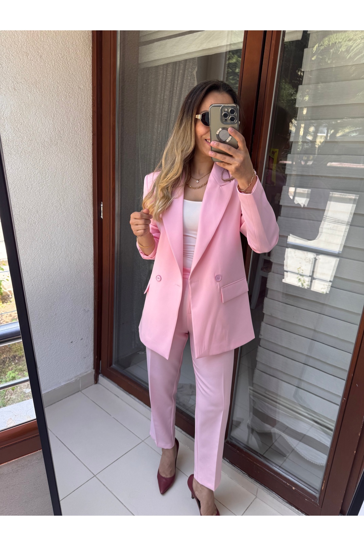 Butikmayamoda Kadin Pembe Ceket Pantolon İkili Takim Butikmayamoda Kadin Pembe Ceket Pantolon İkili Takim btkmymdpmb L