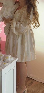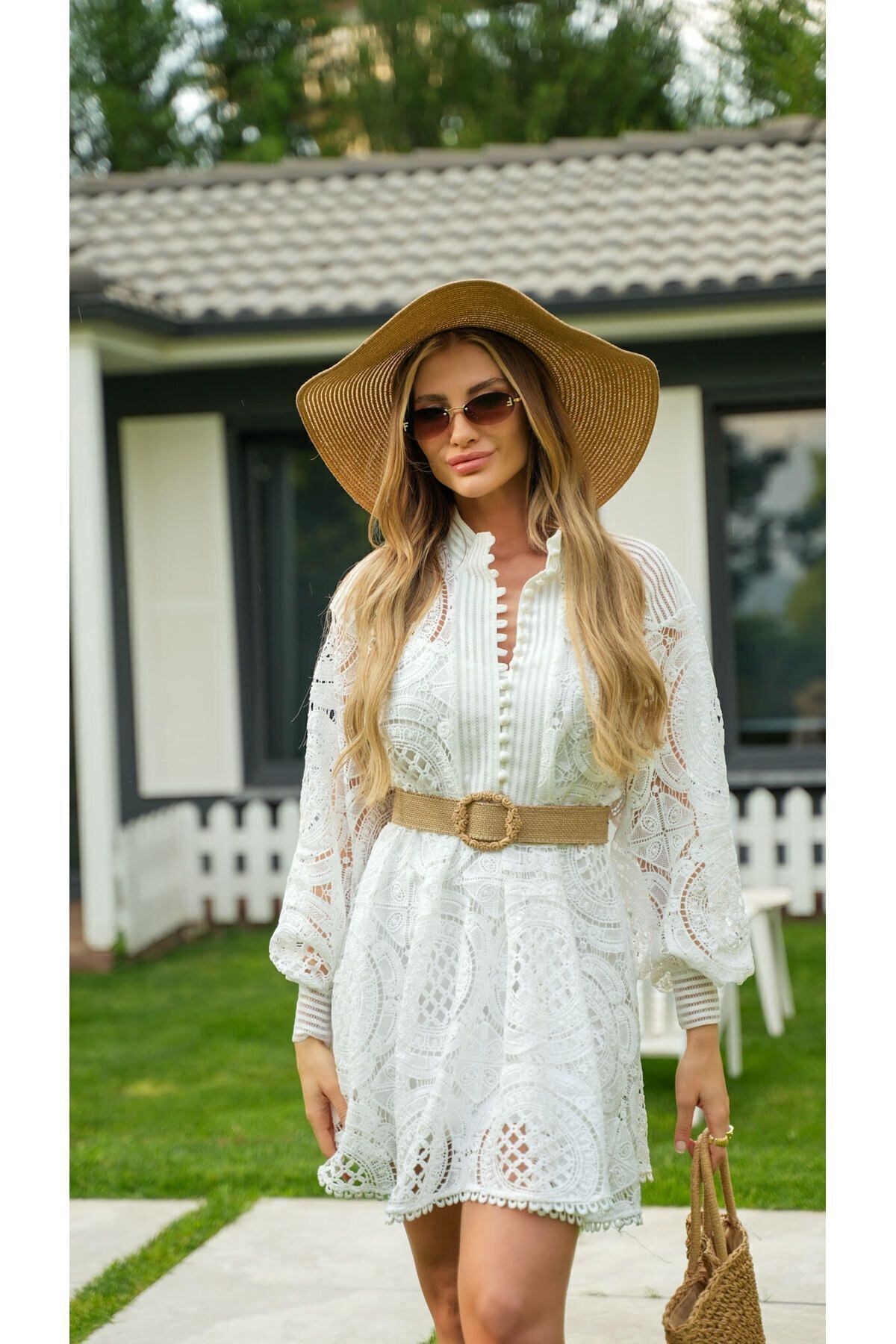 Premium Seri Düğme Detay Krem Desenli Elbise Premium Seri Düğme Detay Krem Desenli Elbise ELB-0692-KREM XL
