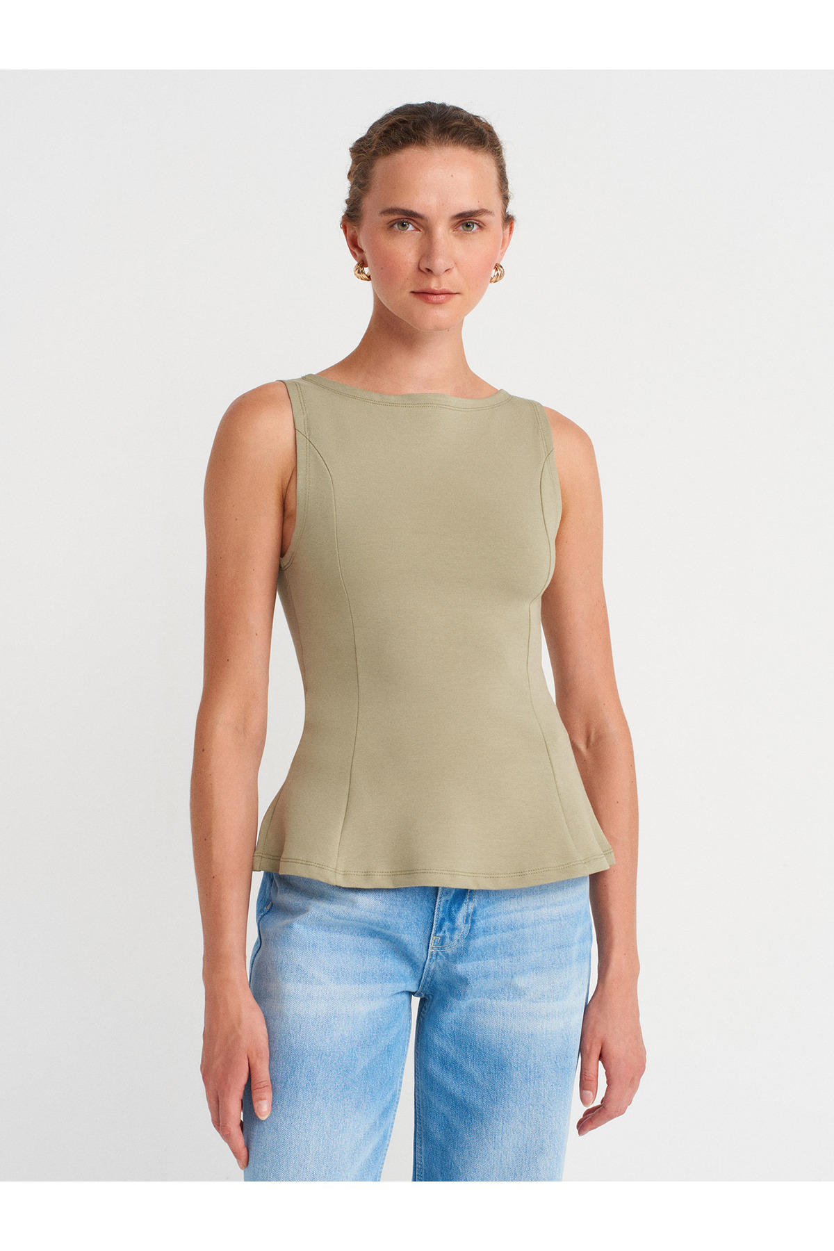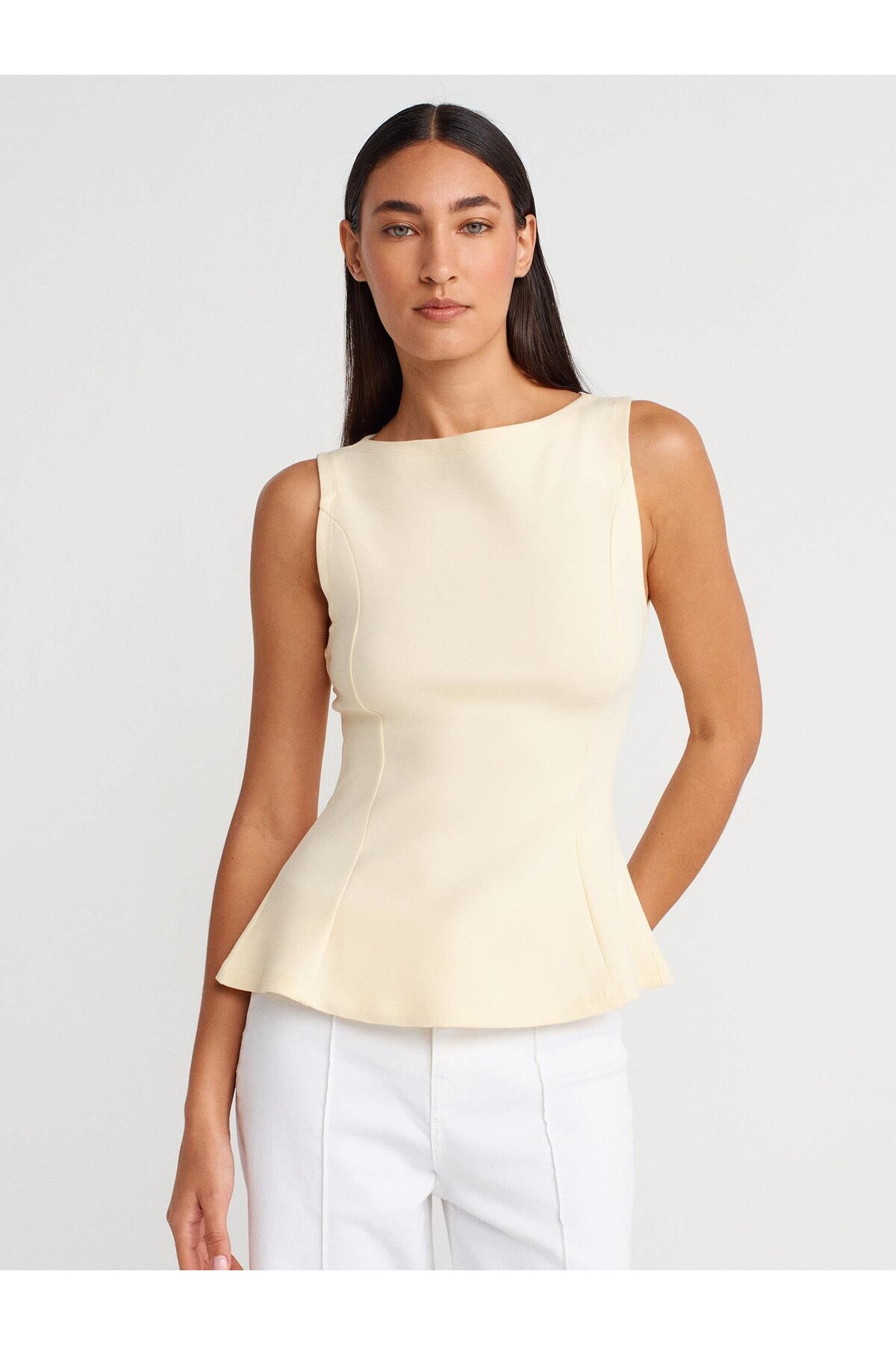 21001 Kayık Yaka Peplum Top-Taş 21001 Kayık Yaka Peplum Top-Taş 101A21001 40