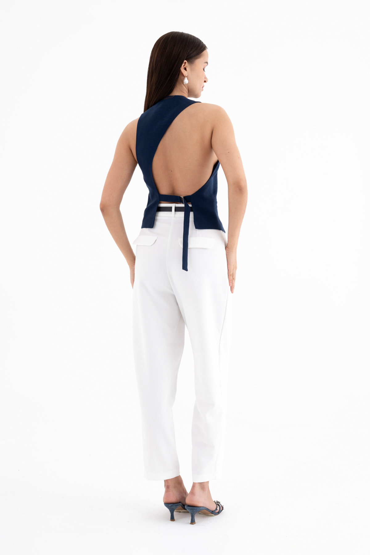 Boyundan Geçmelı Sırt Dekoltelı Tokalı Yelek Boyundan Geçmelı Sırt Dekoltelı Tokalı Yelek PSM051NEVE L