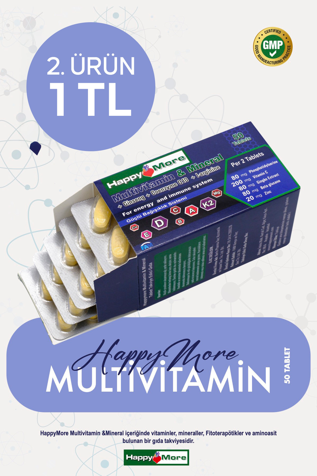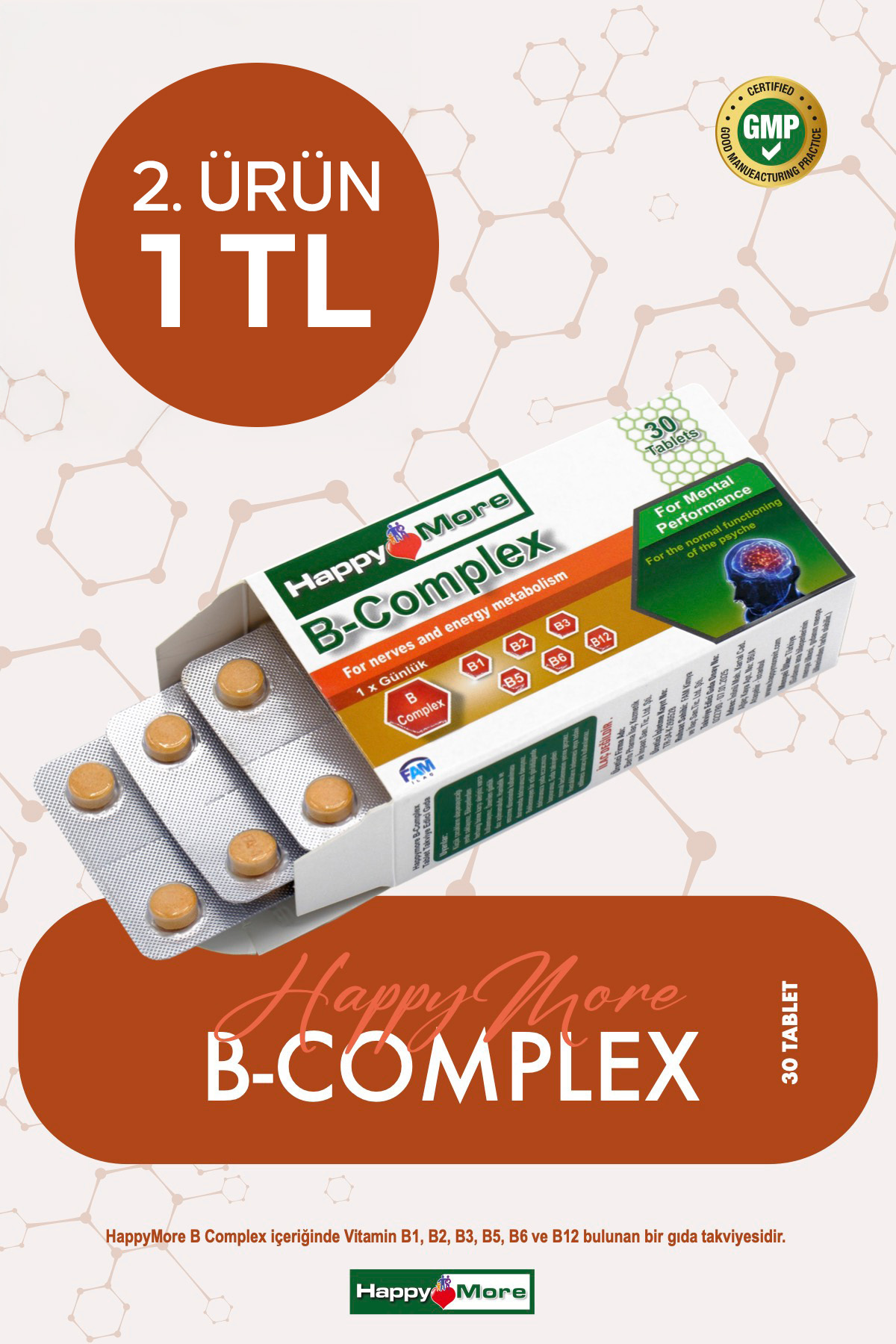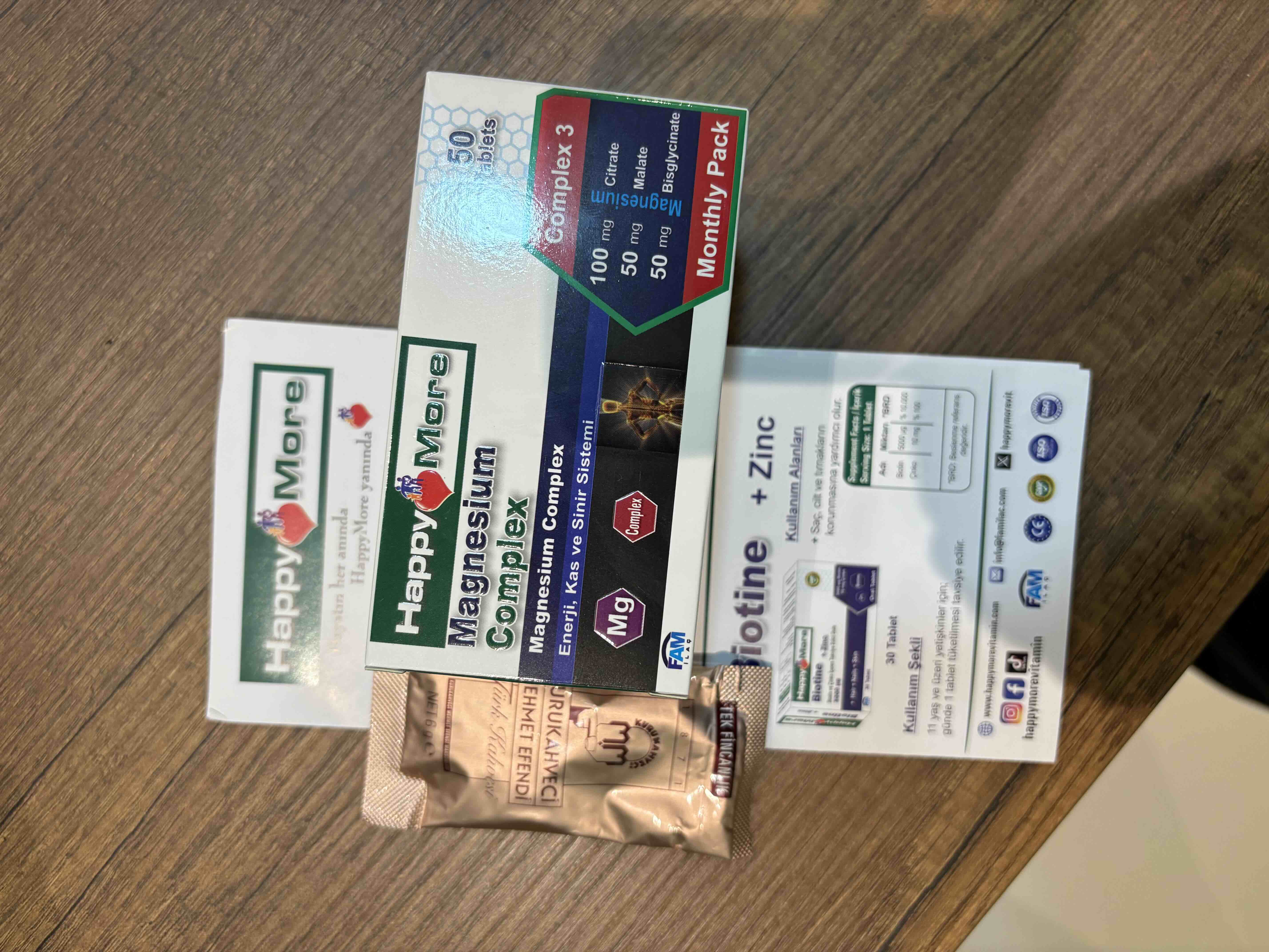 - Diğer Özellikler : HappyMore Magnezyum Complex içeriğinde Magnezyum Sitrat, Magnezyum Malat ve Magnezyum Bisglisinat bulunan bir gıda takviyesidir. HappyMore Magnezyum Complex; gluten, laktoz, tatlandırıcı, şeker, renklendiirici ve koruyucu içermez.