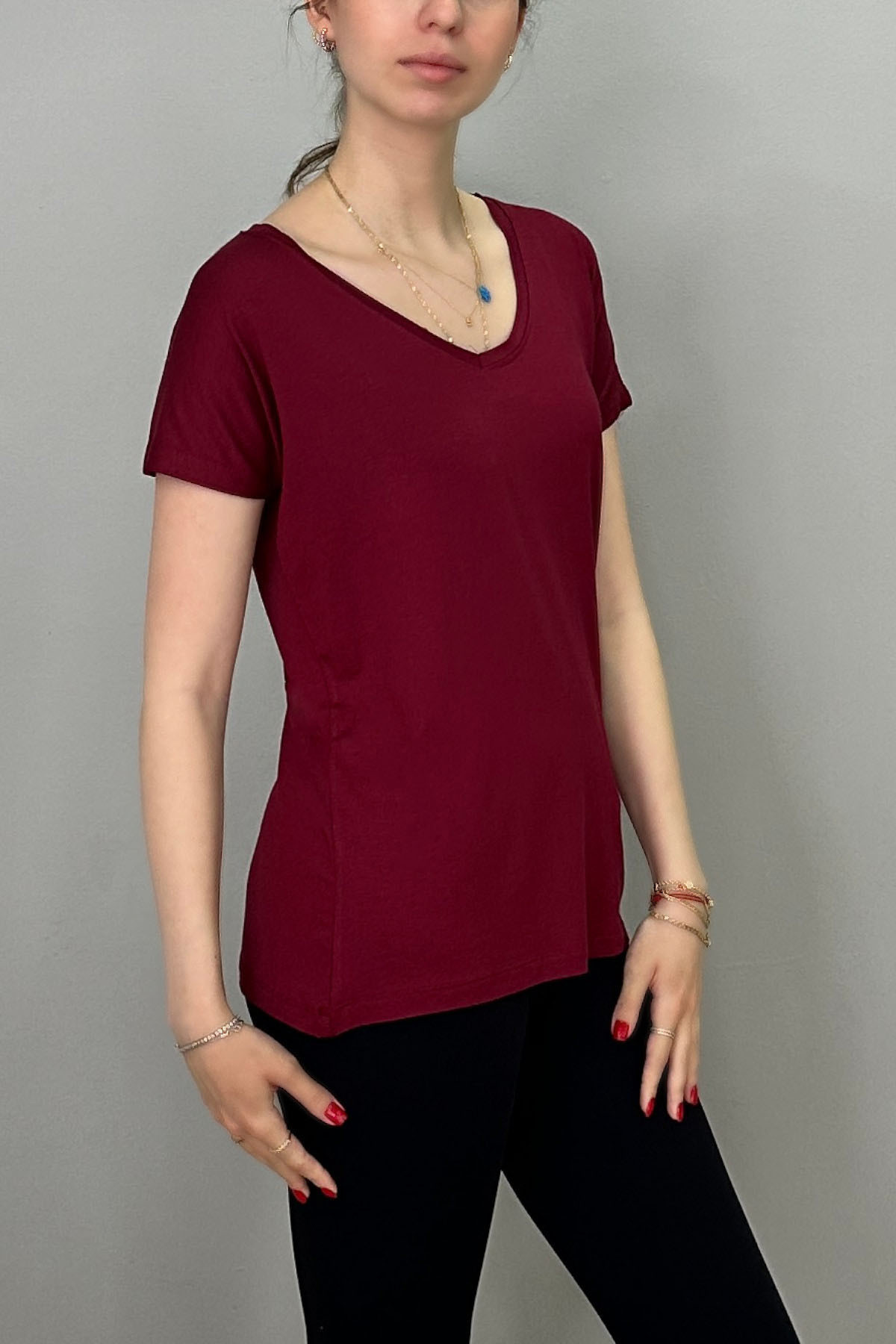 V Yaka Dar/slim fit eteği oval Kadın Tişört V Yaka Dar/slim fit eteği oval Kadın Tişört vtvyakaslimfit L