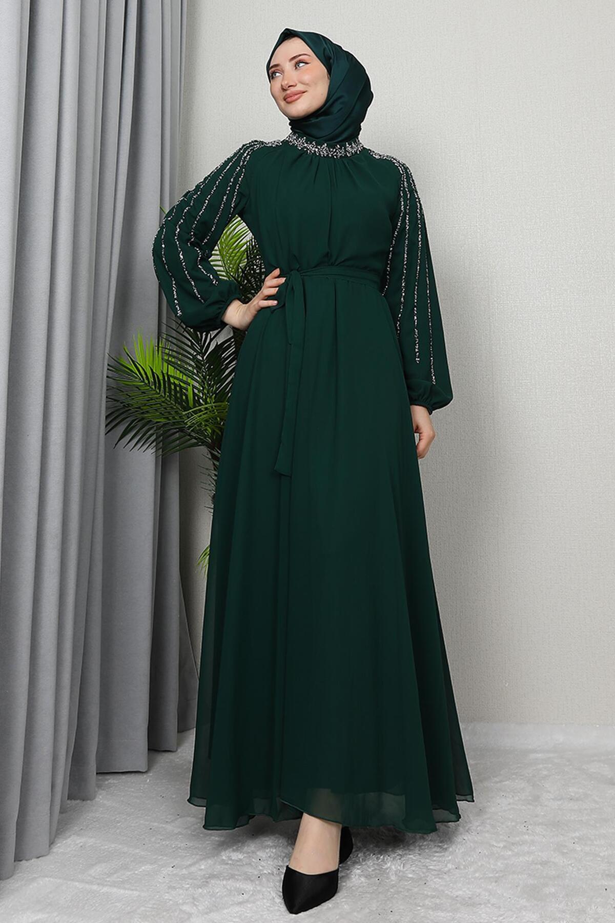 Nisan Taşlı Elbise Yağ Yeşil Nisan Taşlı Elbise Yağ Yeşil 5325080 46