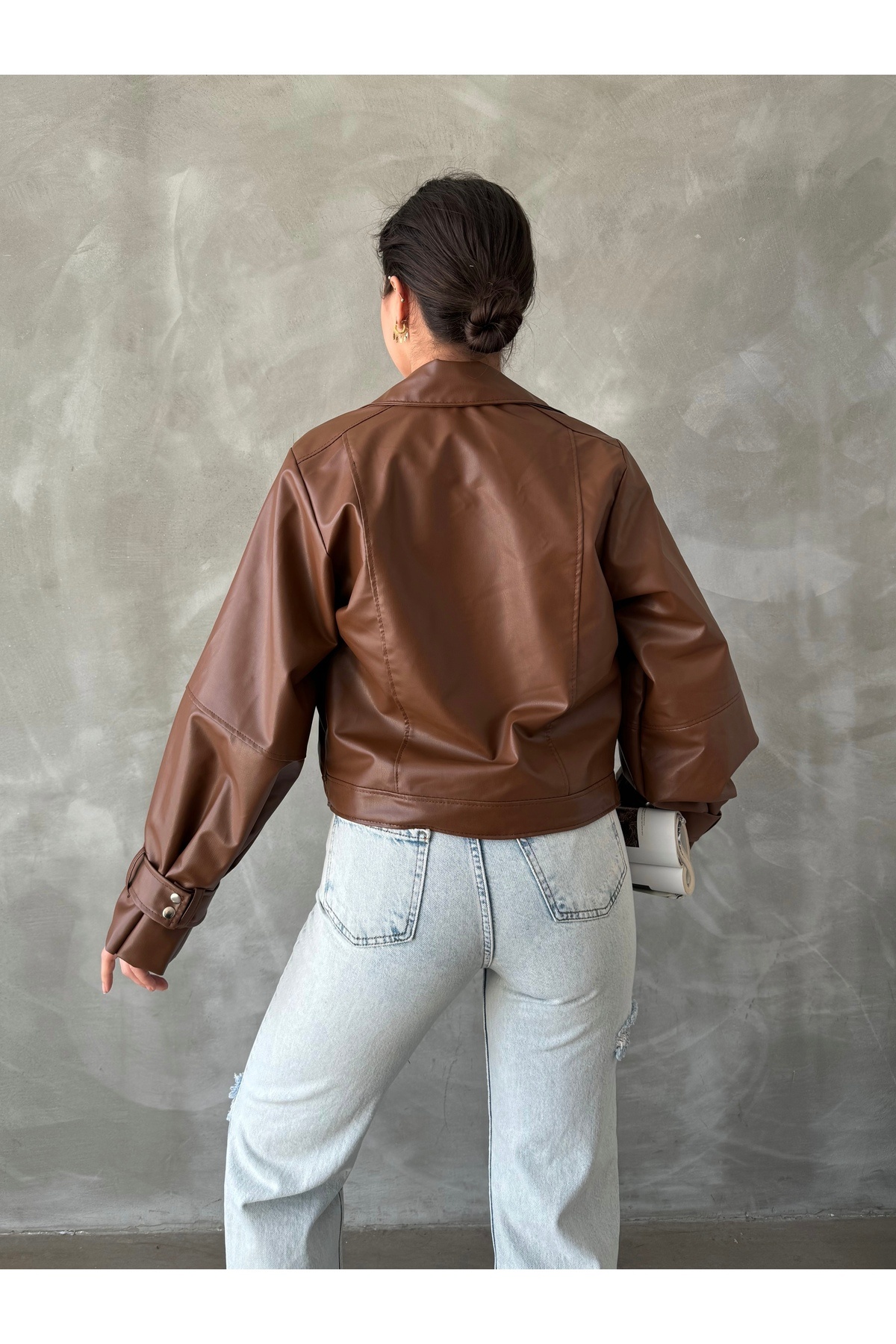 Balon Kol Suni Deri Ceket Balon Kol Suni Deri Ceket DD8833 L