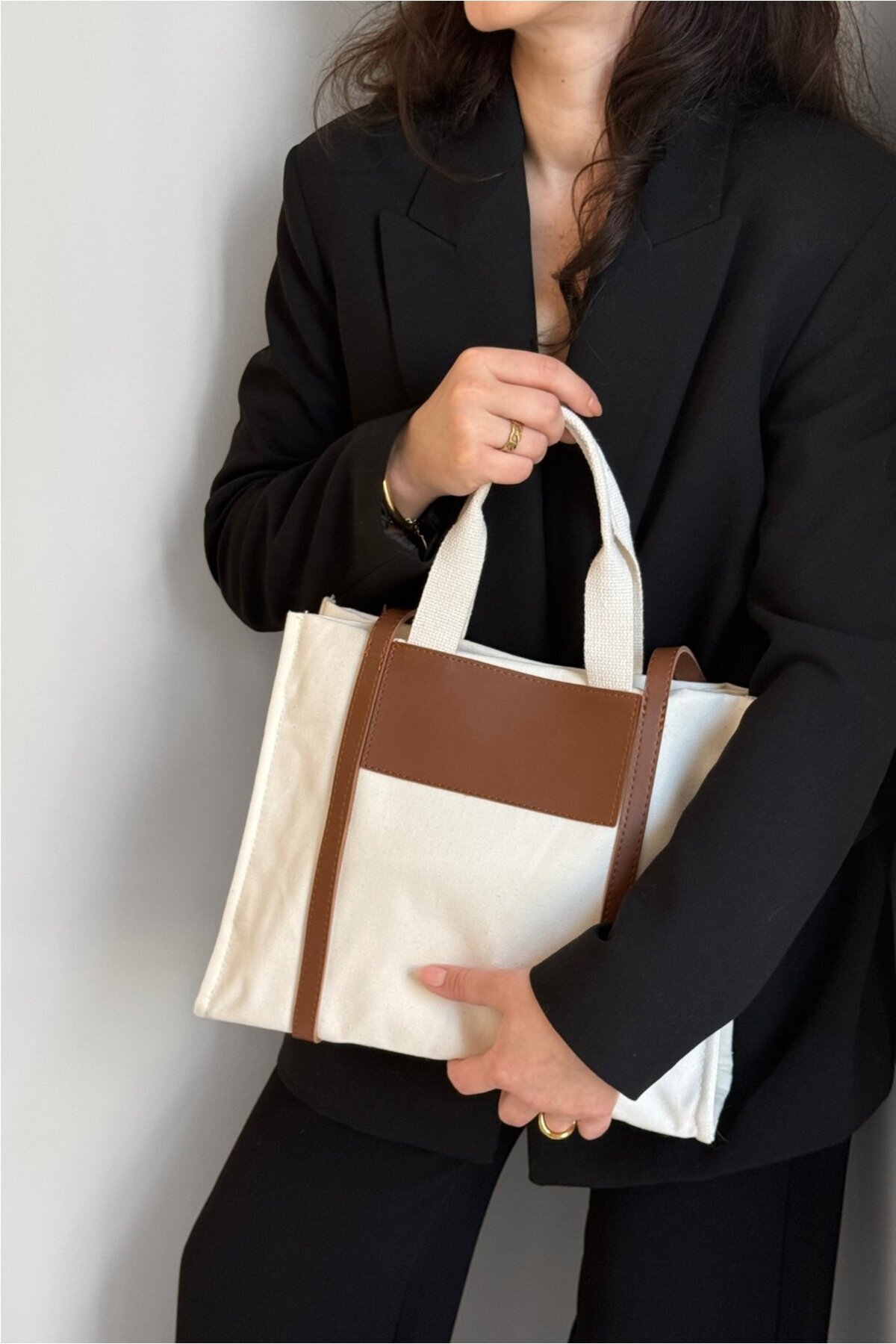 Dailin Deri Detaylı Kanvas El ve Omuz Çantası Dailin Deri Detaylı Kanvas El ve Omuz Çantası YUKA171 تک سایز