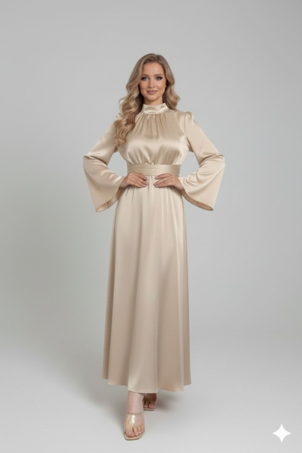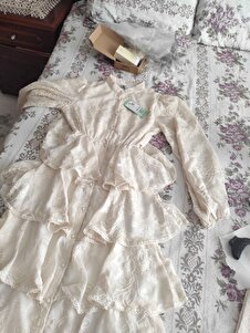 Bej Kolu Lastikli Brode Prenses Elbise Bej Kolu Lastikli Brode Prenses Elbise 8090 L