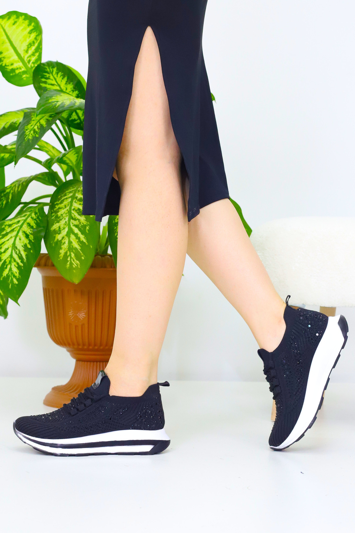 Yeni sezon siyah taşlı triko kadın sneaker Yeni sezon siyah taşlı triko kadın sneaker modaarm655430 40