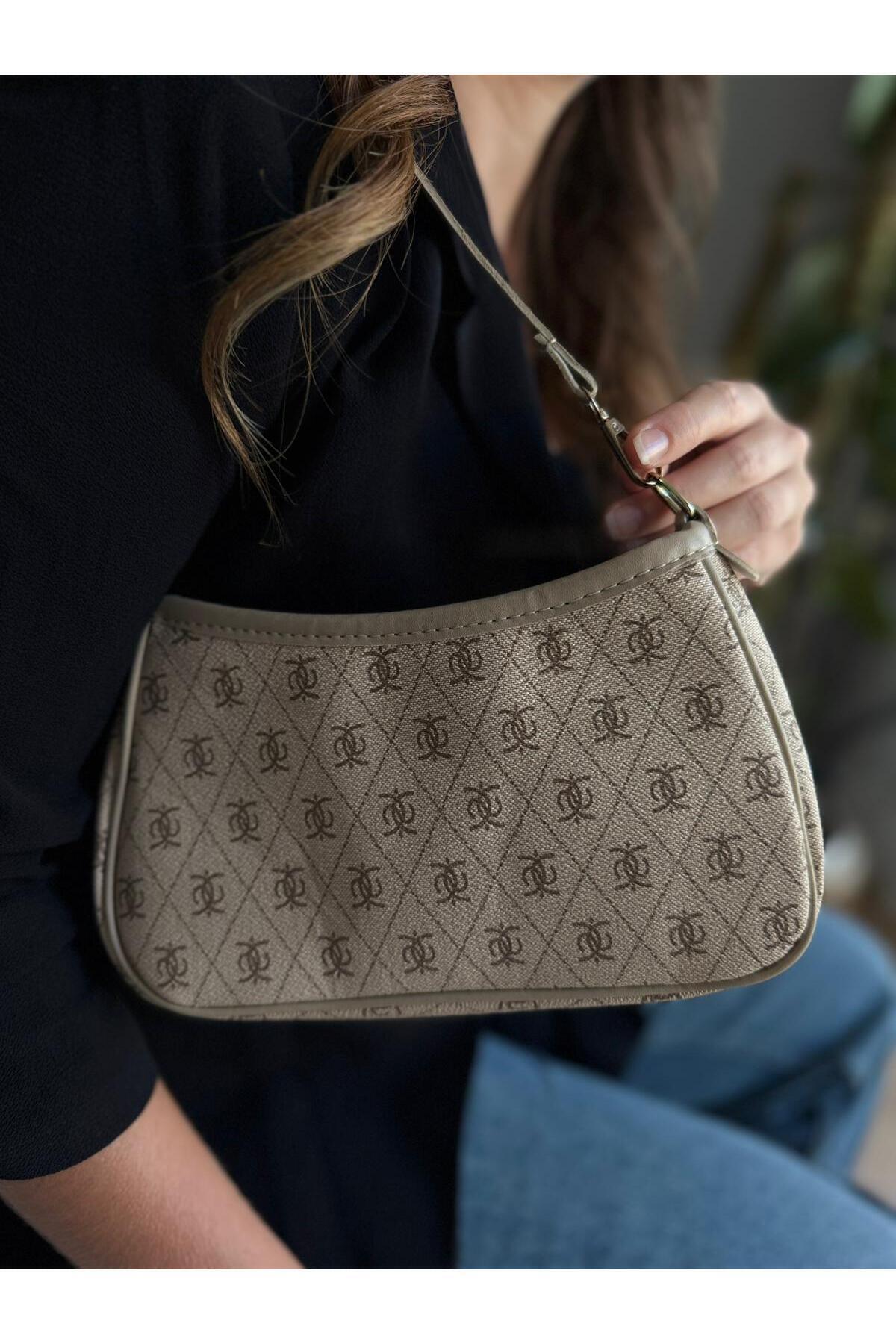 Krem Zincir Desenli Omuz ve El Çantası Krem Zincir Desenli Omuz ve El Çantası LB0024 Standart