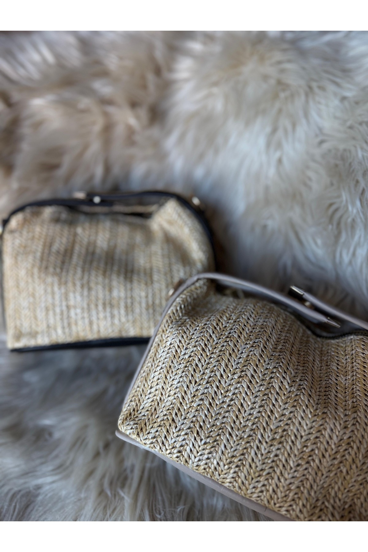 Krem Detaylı Hasır El ve Omuz Çantası Krem Detaylı Hasır El ve Omuz Çantası LB0028 Standart