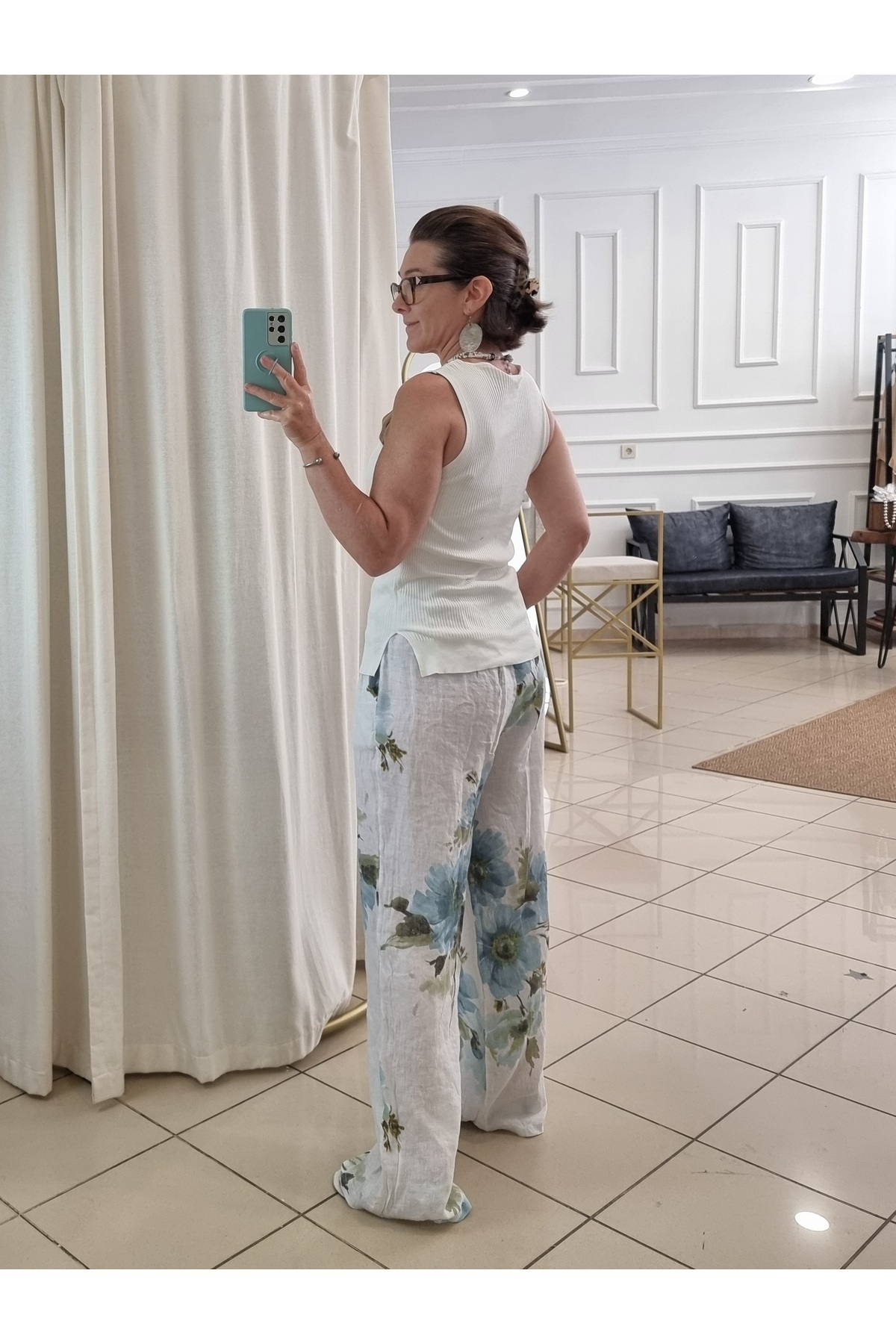 Düz Kesim Desenli Keten Pantolon Beyaz Düz Kesim Desenli Keten Pantolon Beyaz UYPX9DBDF2 Standart