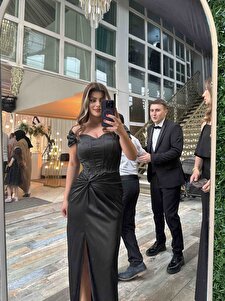 Bel Düğüm Ve Düşük Omuz Abiye Elbise Tam Kalıp Bel Düğüm Ve Düşük Omuz Abiye Elbise Tam Kalıp 9818 42
