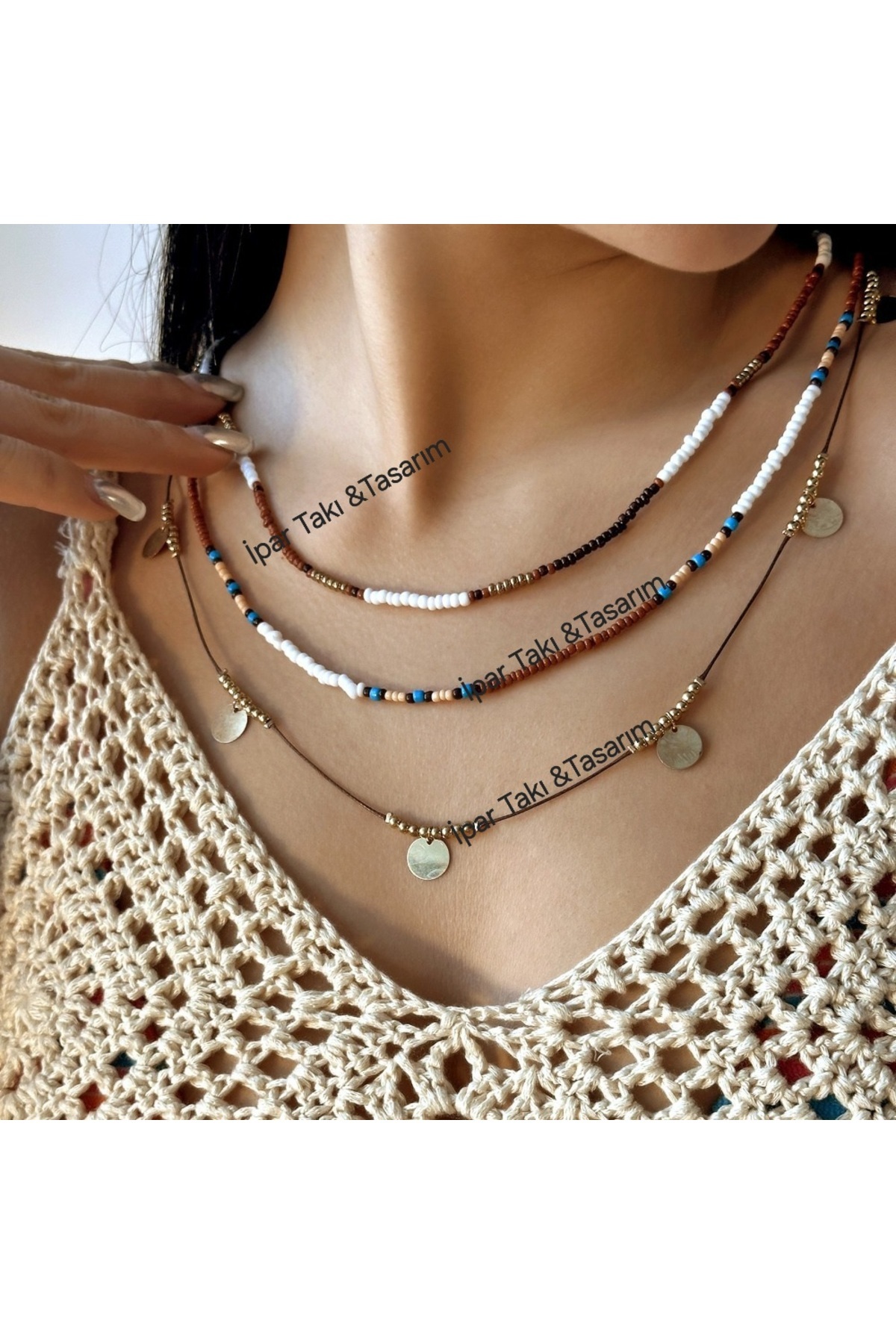 Kum Boncuklu Pullu Tasarım Kolye Kum Boncuklu Pullu Tasarım Kolye İP-KOLYE0041