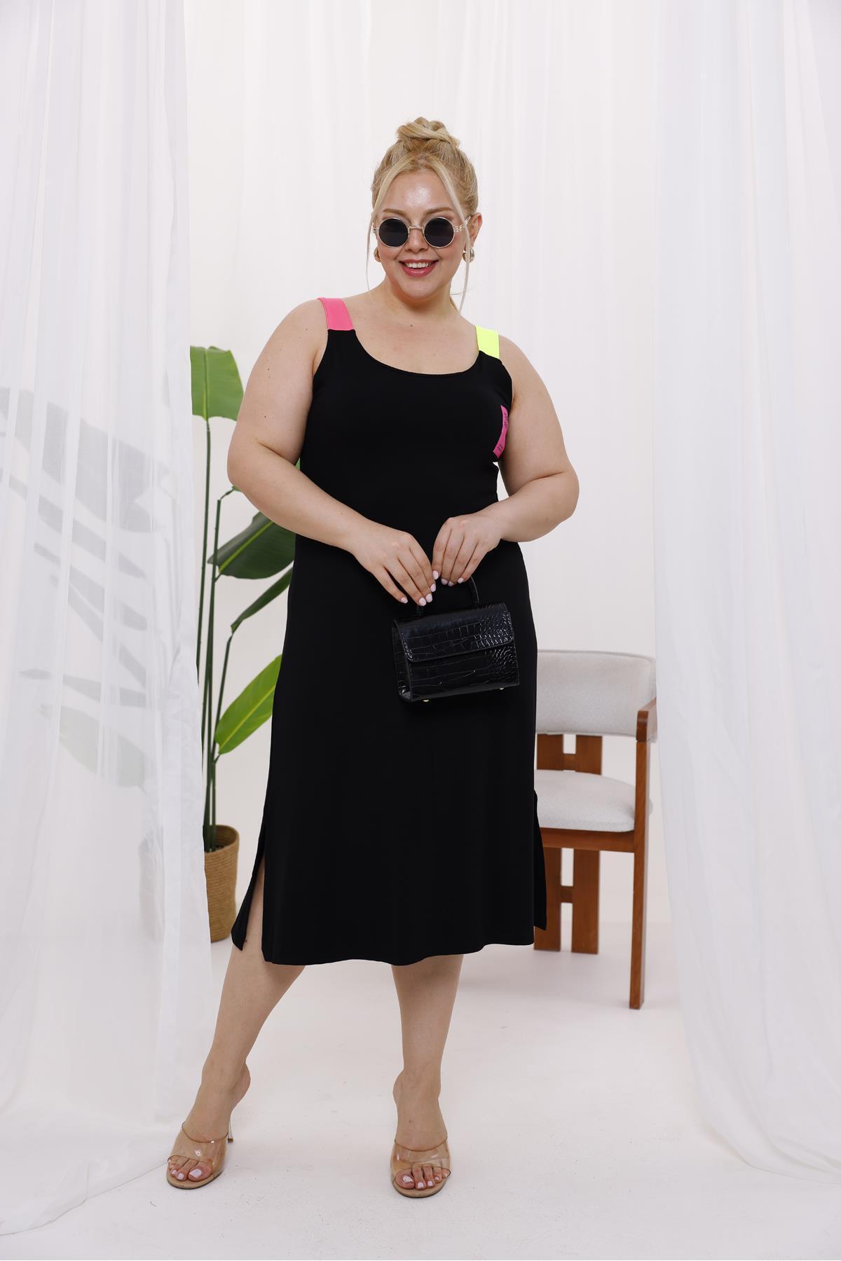 Büyük Beden Neon Şerit Detaylı Modal Pamuk Elbise Büyük Beden Neon Şerit Detaylı Modal Pamuk Elbise 5Y-ELB00040 46