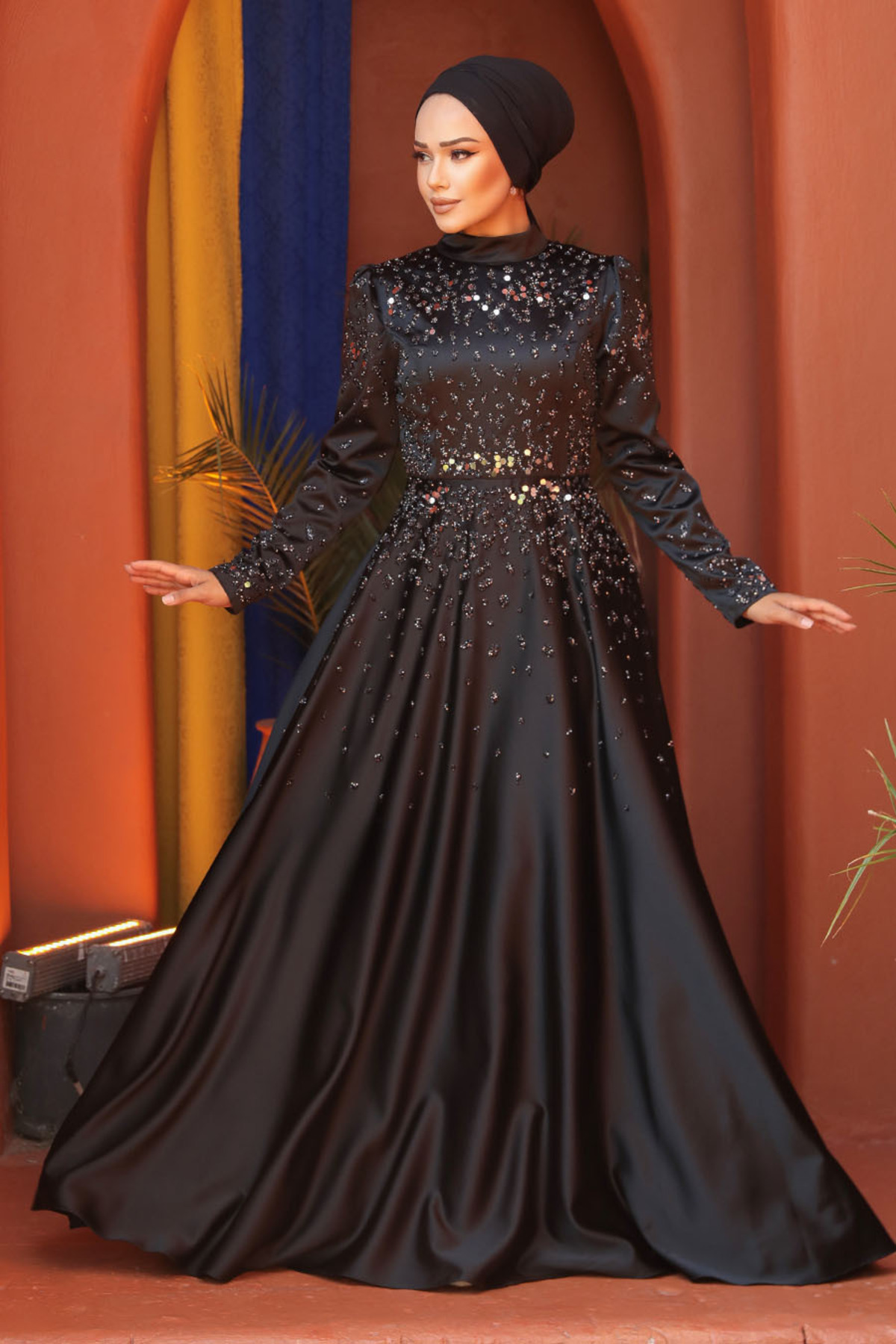Boncuk İşlemeli Siyah Tesettür Abiye Elbise 25913S Boncuk İşlemeli Siyah Tesettür Abiye Elbise 25913S FY-25913 52