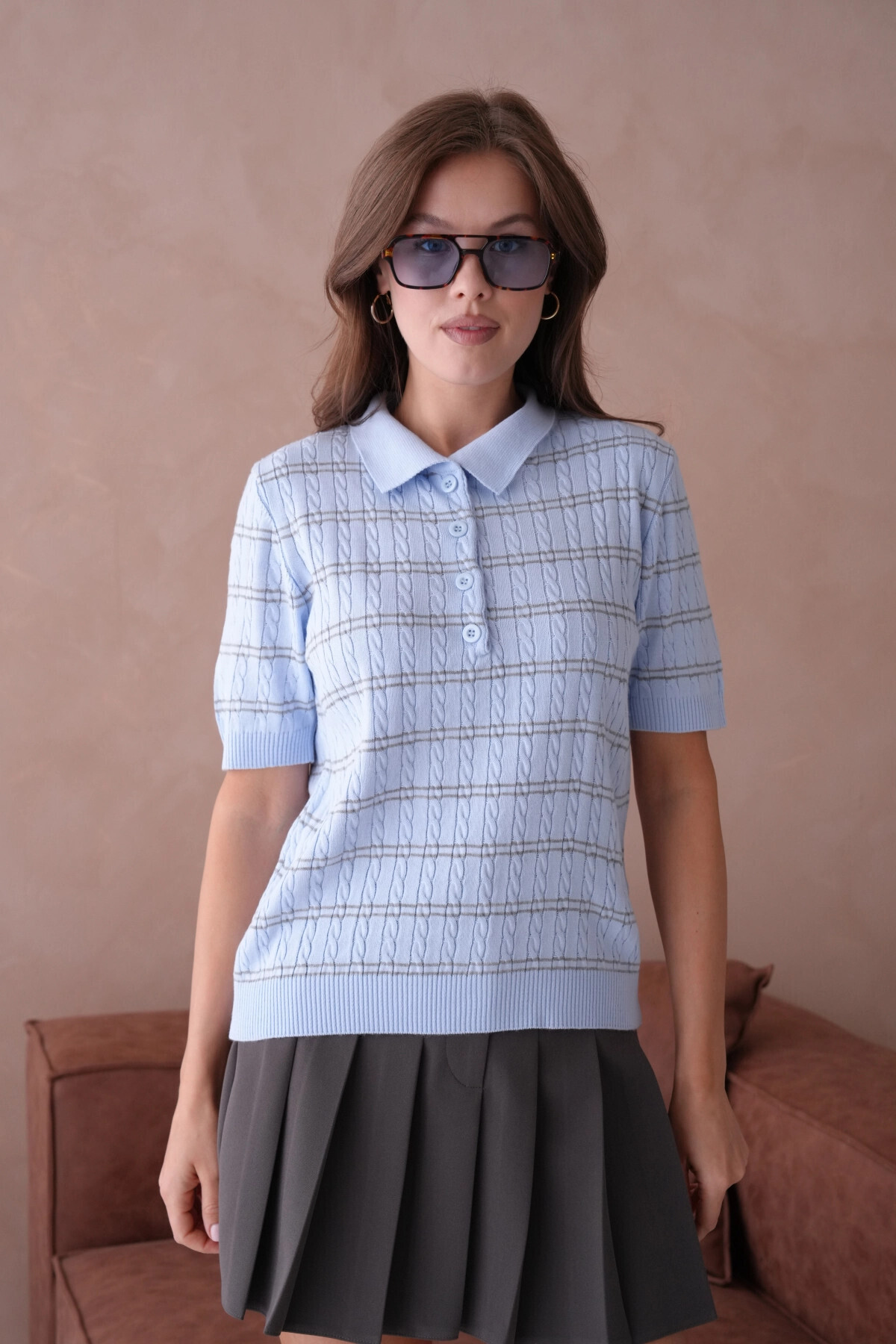 Polo Yaka Kısa Kol Desenli Polo Triko Kazak Polo Yaka Kısa Kol Desenli Polo Triko Kazak TYC268D2E51F7C79560F0E400 Standart
