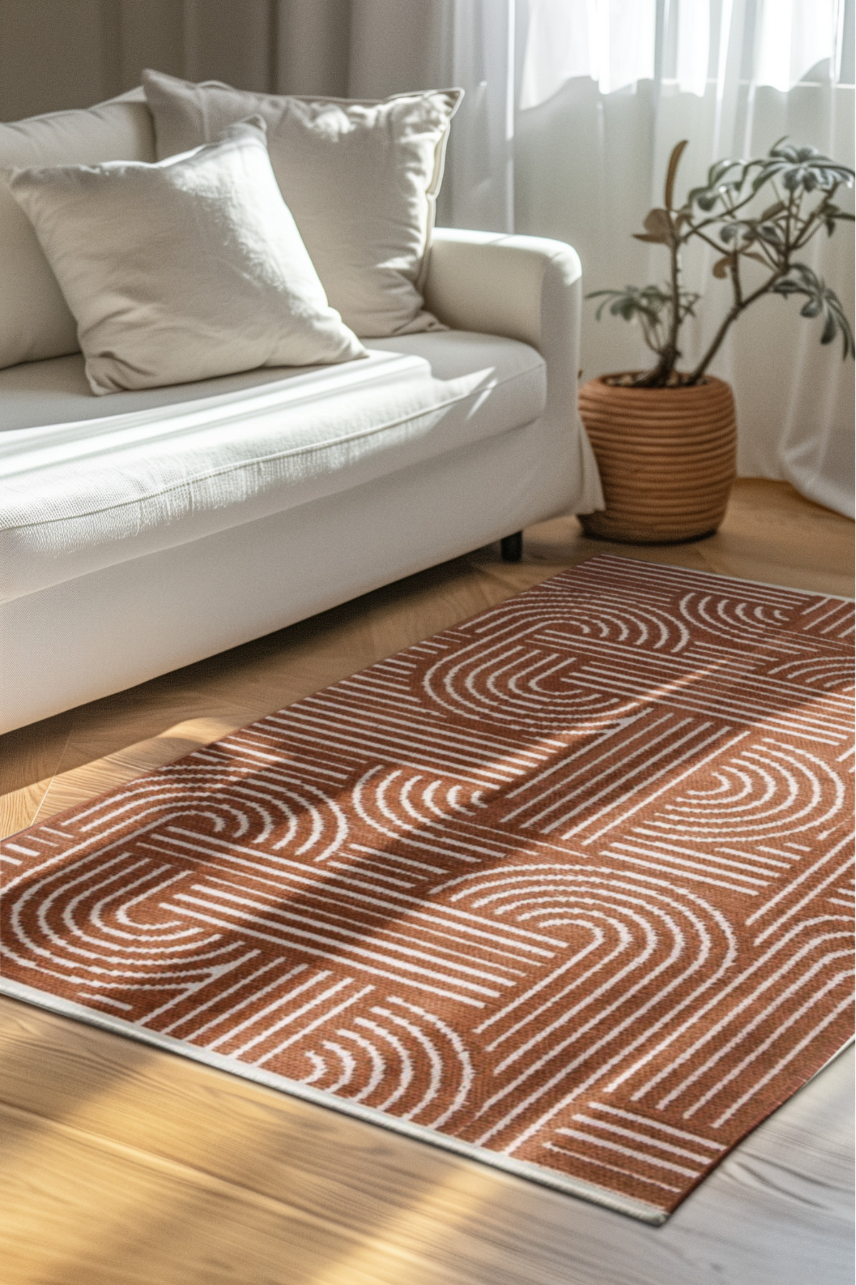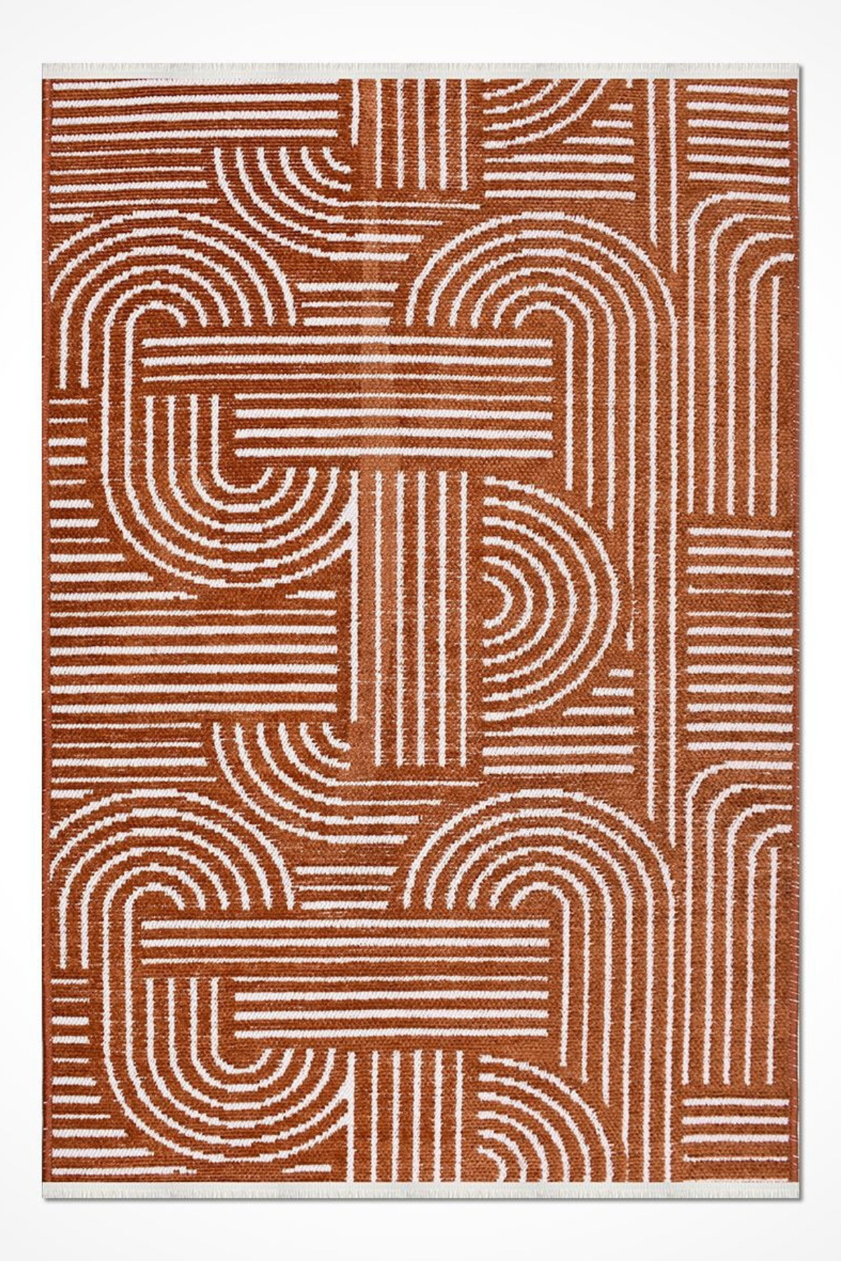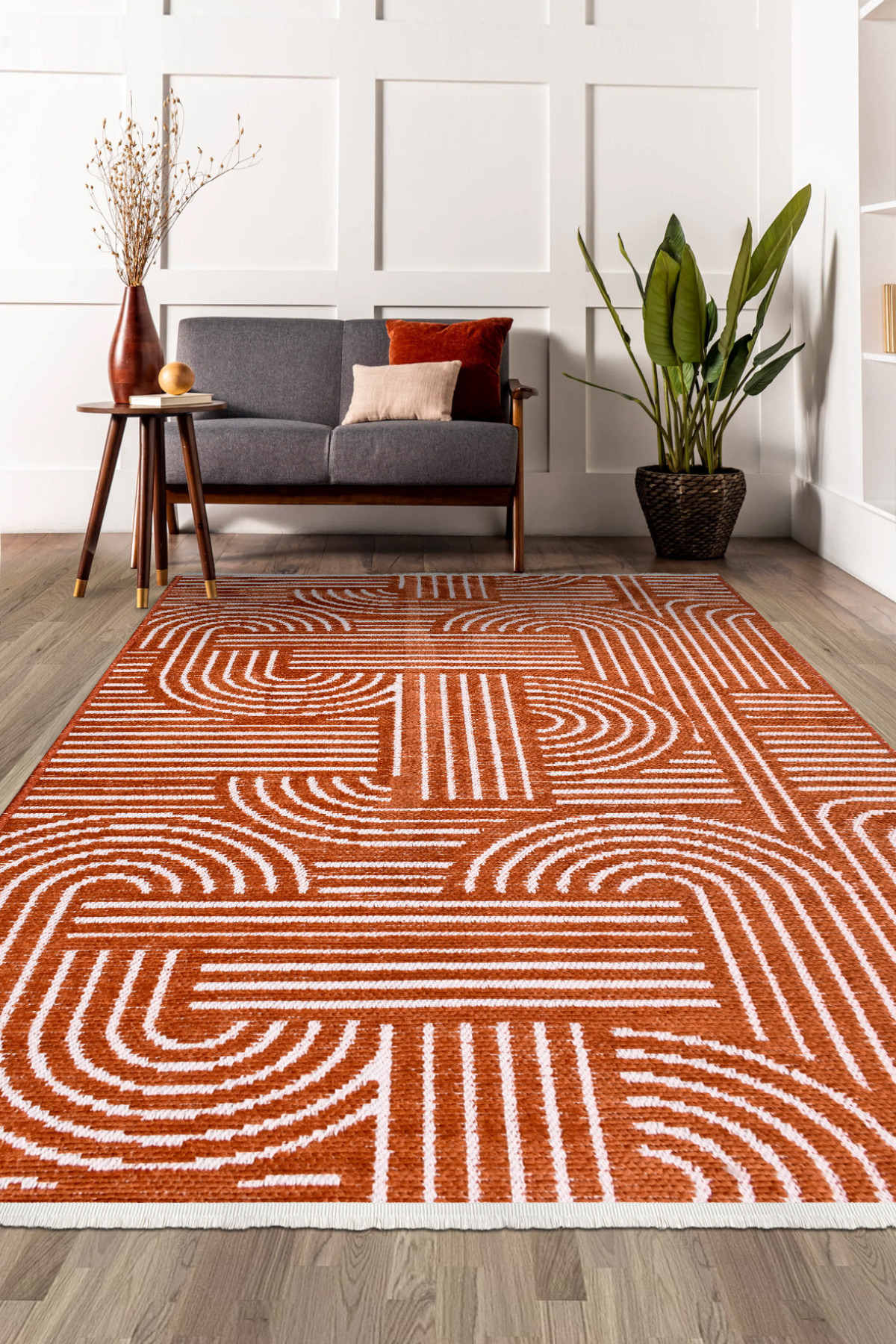 Revna Kiremit Turuncu Yıkanabilir Halı Kaydırmaz Tabanlı Pamuk Dokuma Salon Mutfak Koridor İçin Revna Kiremit Turuncu Yıkanabilir Halı Kaydırmaz Tabanlı Pamuk Dokuma Salon Mutfak Koridor İçin DK8611 160 x 230