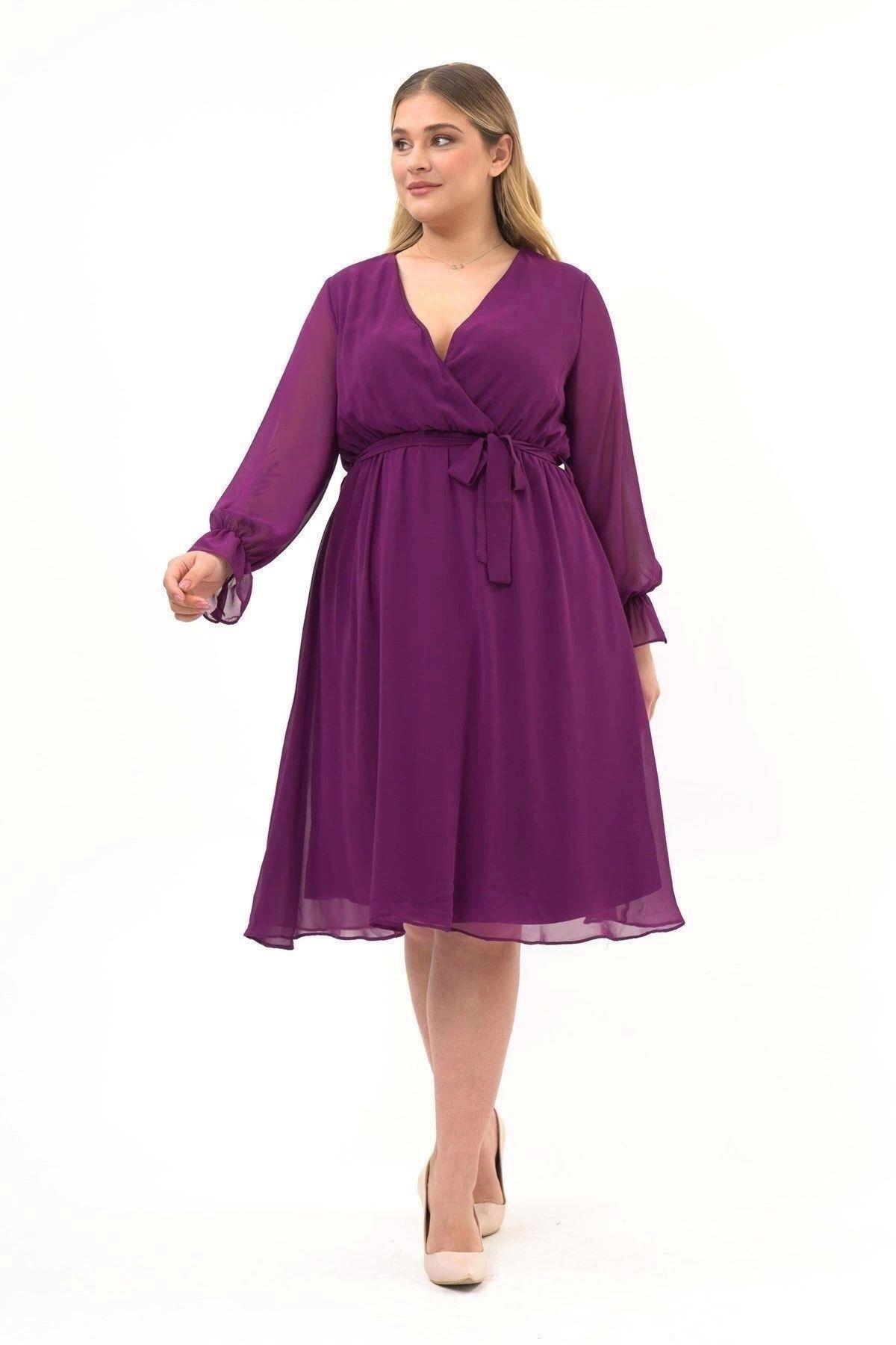 Kadın Kruvaze Yaka Kuşaklı Büyük Beden Uzun Kol Midi Boy Şifon Elbise 4450/110 Kadın Kruvaze Yaka Kuşaklı Büyük Beden Uzun Kol Midi Boy Şifon Elbise 4450/110 50