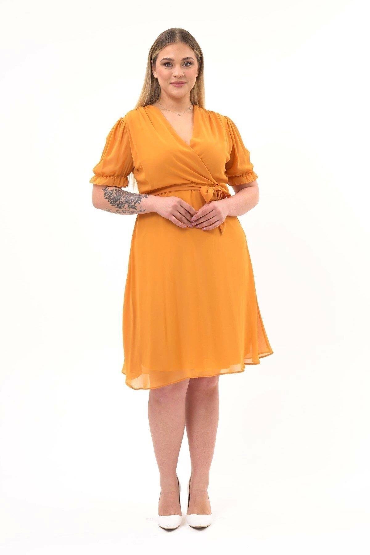 Kadın Kruvaze Yaka Kuşaklı Büyük Beden Midi Boy Şifon Elbise 4255/110 Kadın Kruvaze Yaka Kuşaklı Büyük Beden Midi Boy Şifon Elbise 4255/110 50