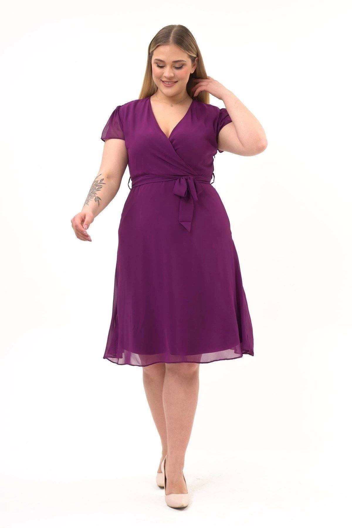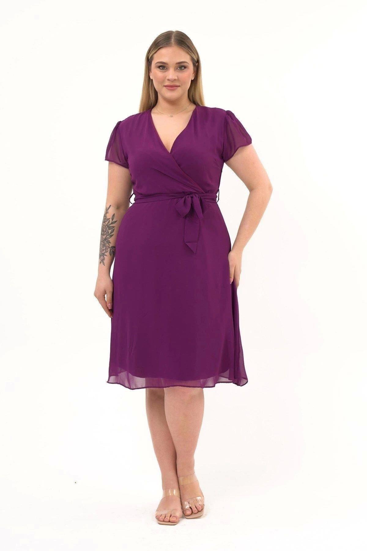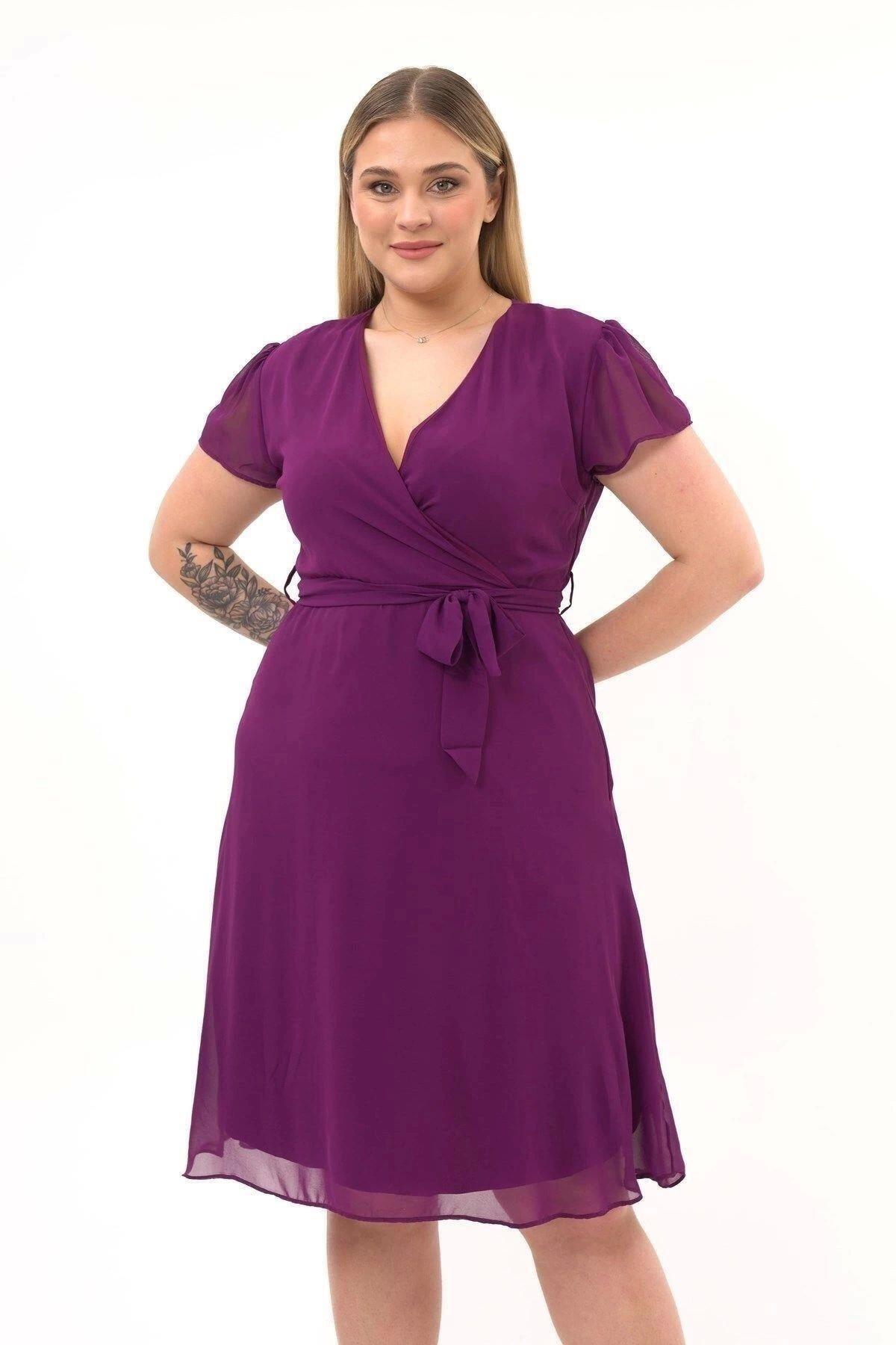 Kadın Kruvaze Yaka Midi Şifon Elbise 4449/110 Kadın Kruvaze Yaka Midi Şifon Elbise 4449/110 48