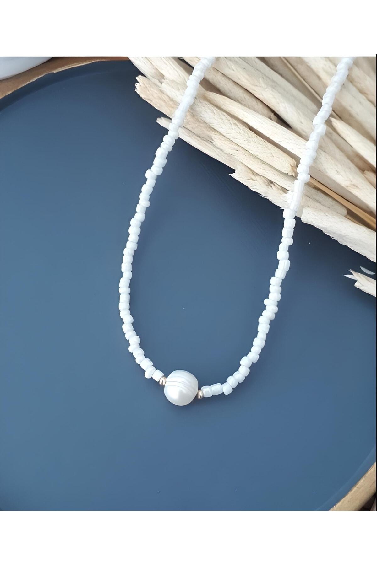 Gerçek İncili Kum Boncuklu Trend Kolye Gerçek İncili Kum Boncuklu Trend Kolye 0000577 M
