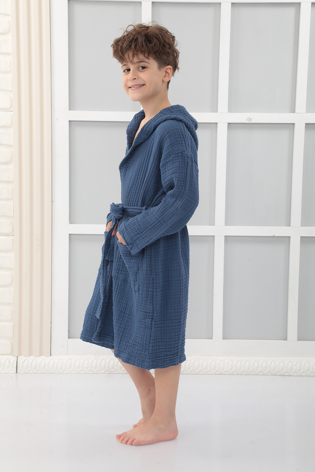 4 Kat Müslin Kapüşonlu Çocuk Bornoz Lacivert Renk Unisex 4 Kat Müslin Kapüşonlu Çocuk Bornoz Lacivert Renk Unisex TYFN1 9-10 Yaş