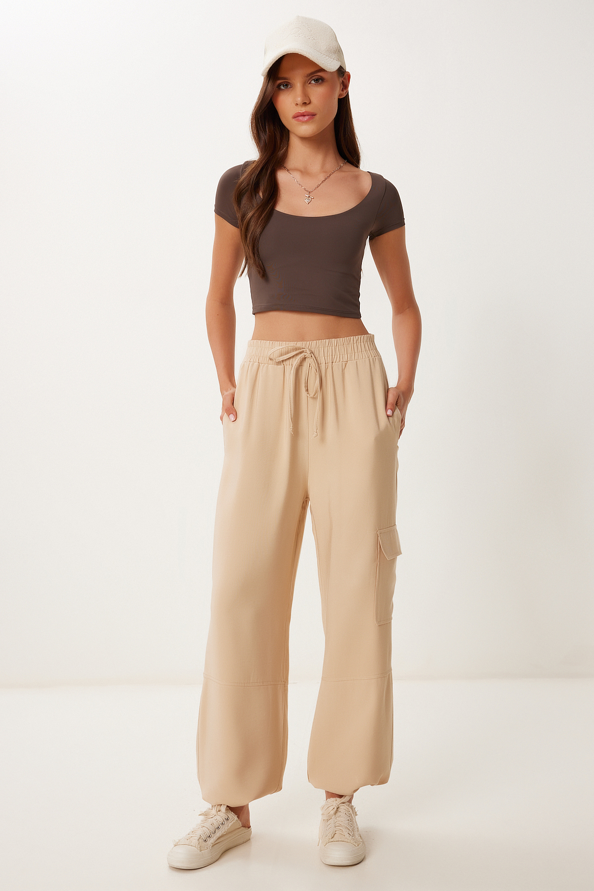 Kadın Fıstık Yeşili Cepli Keten Kargo Pantolon MX00212 Kadın Fıstık Yeşili Cepli Keten Kargo Pantolon MX00212 40