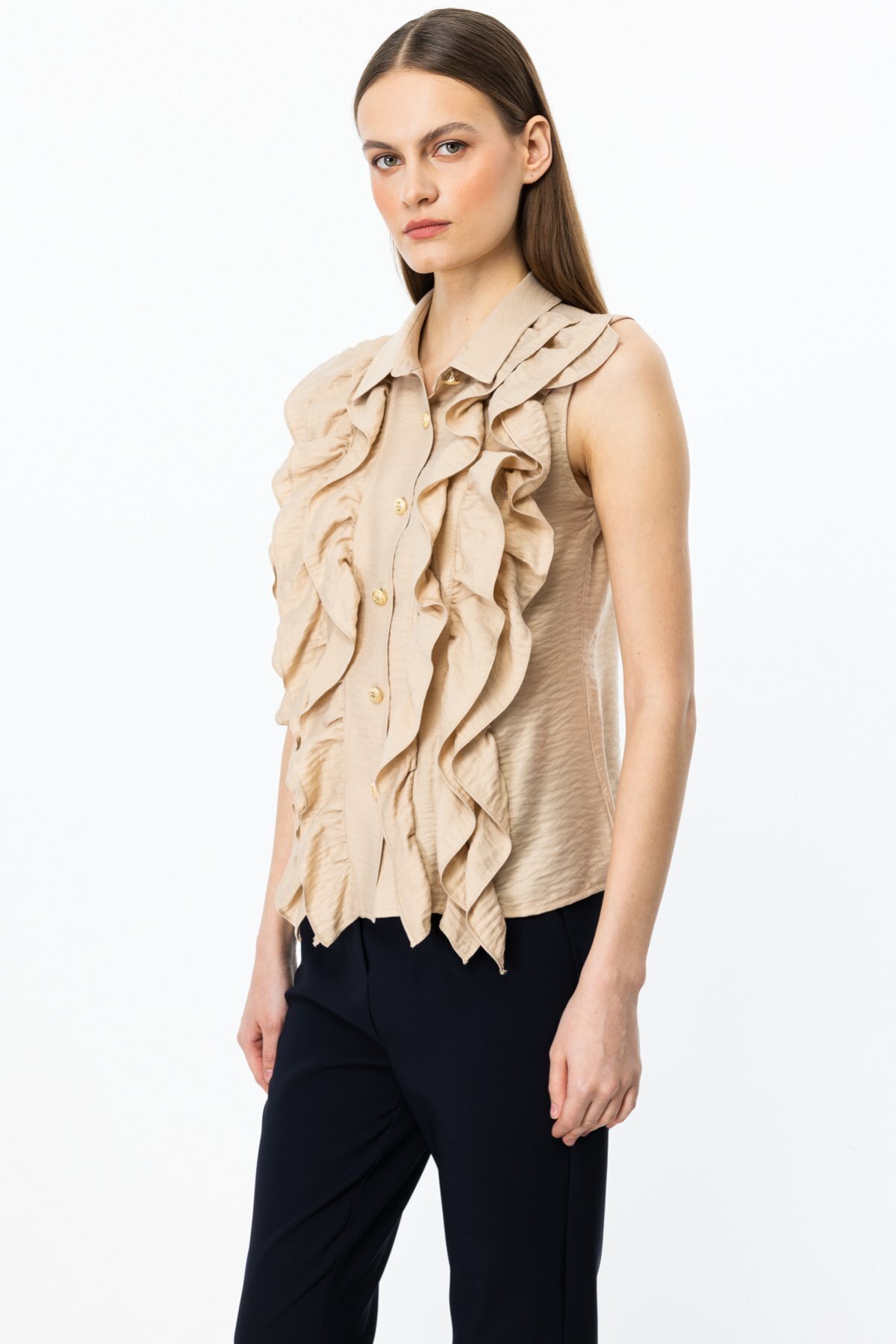 Mi Önü Fırfırlı Sıfır Kol Bluz Mi Önü Fırfırlı Sıfır Kol Bluz 25Y.MI.BLZ.82695.01 44
