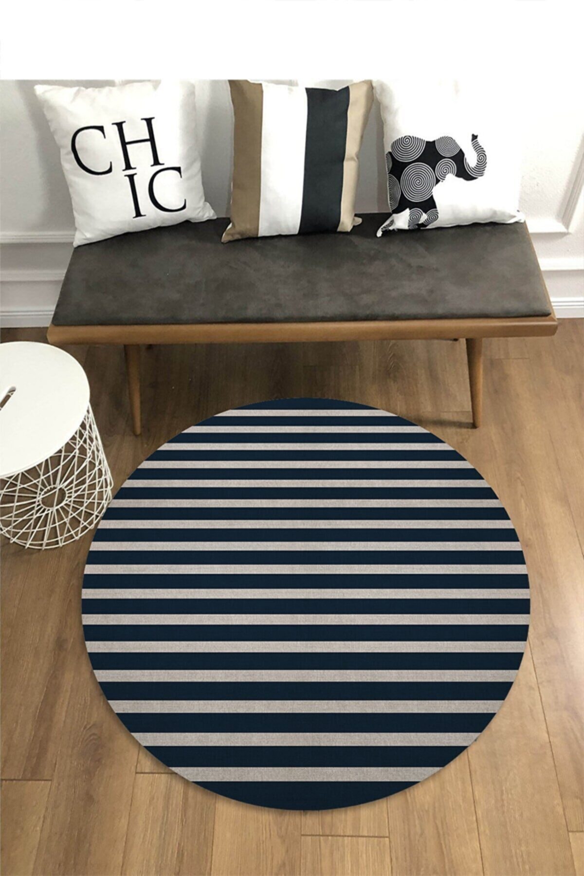 Çizgili Desenli Modern Yuvarlak Salon Halısı | Yıkanabilir Kaymaz Taban Çizgili Desenli Modern Yuvarlak Salon Halısı | Yıkanabilir Kaymaz Taban HaliYuv-Comfort-12123 180 x 180