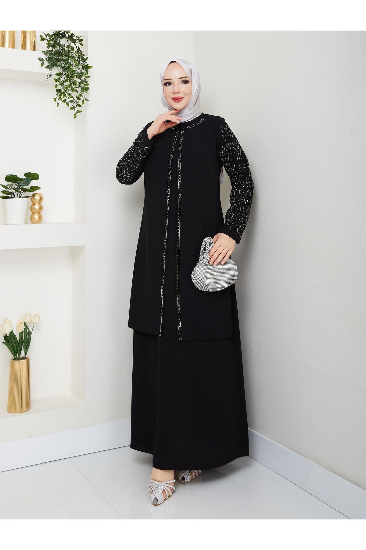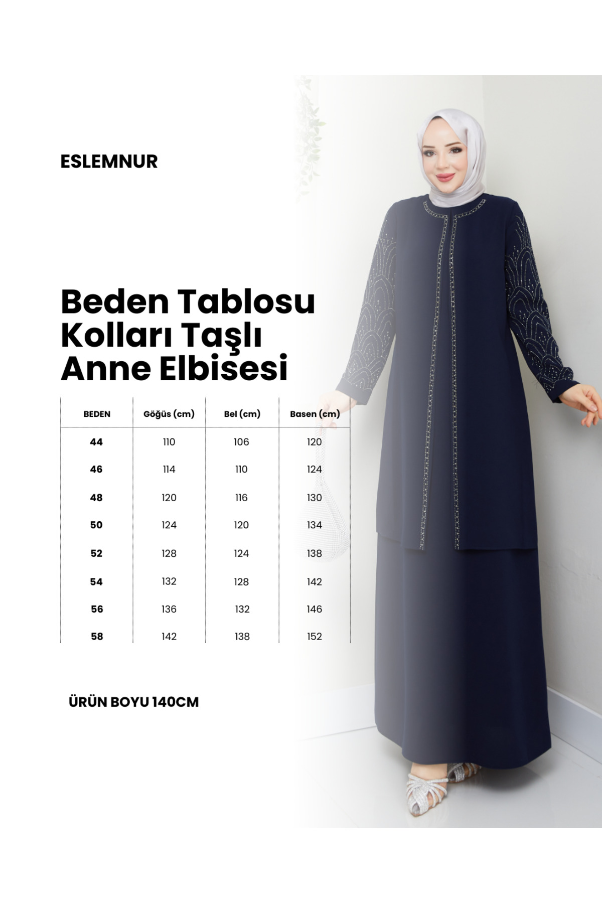 Kolları Taşlı Büyük Beden Anne Elbisesi Kolları Taşlı Büyük Beden Anne Elbisesi EN7012 58