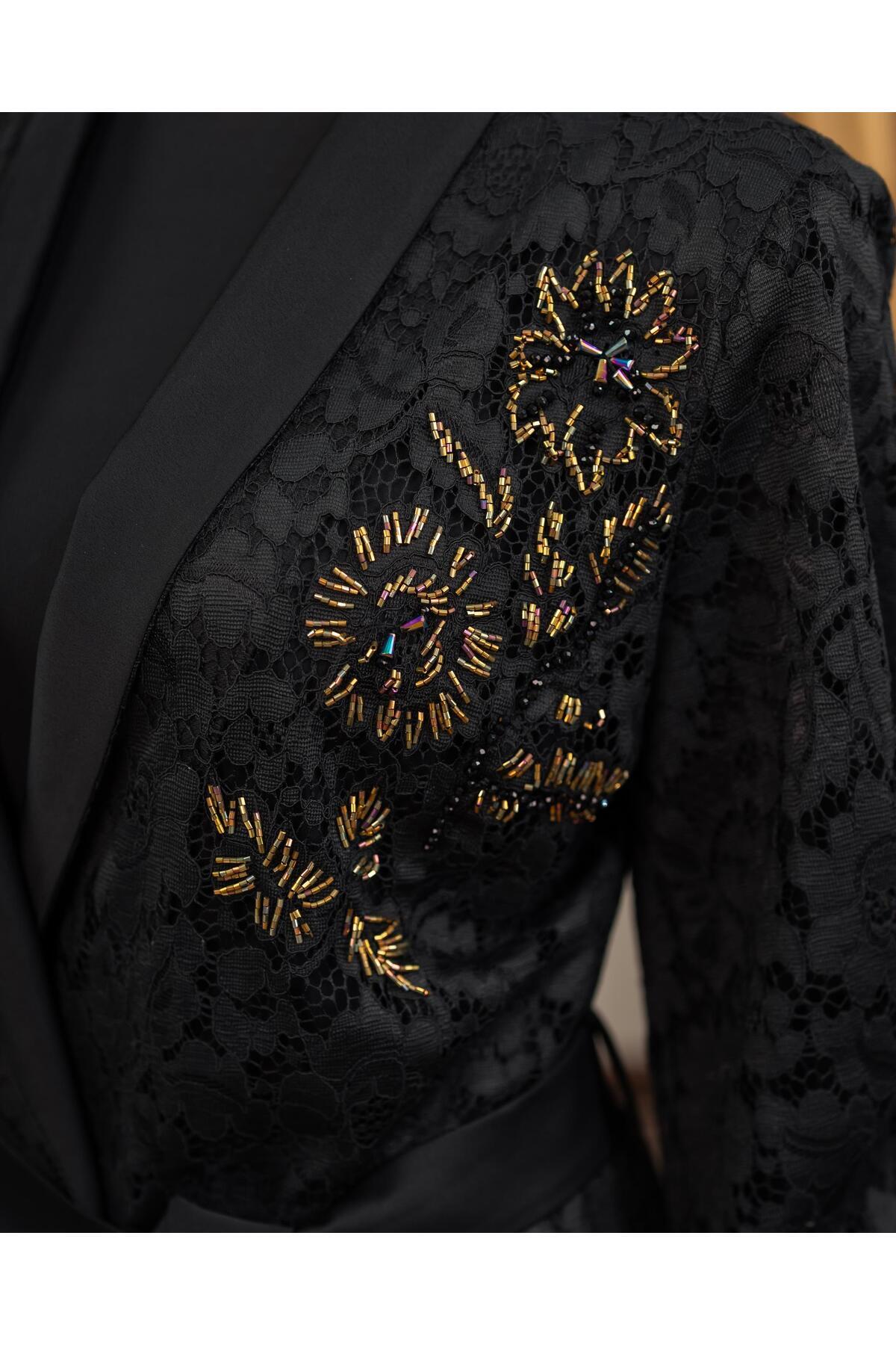 Dantel Ceket Bluz Pantolon Üçlü takım Siyah Dantel Ceket Bluz Pantolon Üçlü takım Siyah SS25TKM1015 44