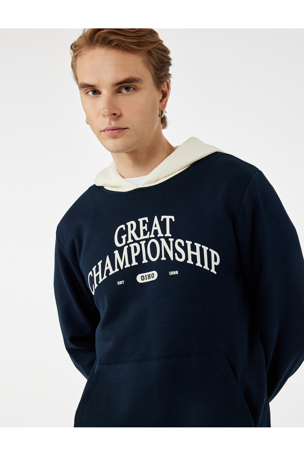 Uzun Kollu Renk Kontrastlı Baskılı Kapşonlu Sweatshirt Uzun Kollu Renk Kontrastlı Baskılı Kapşonlu Sweatshirt 5SAM70037MK 2XL