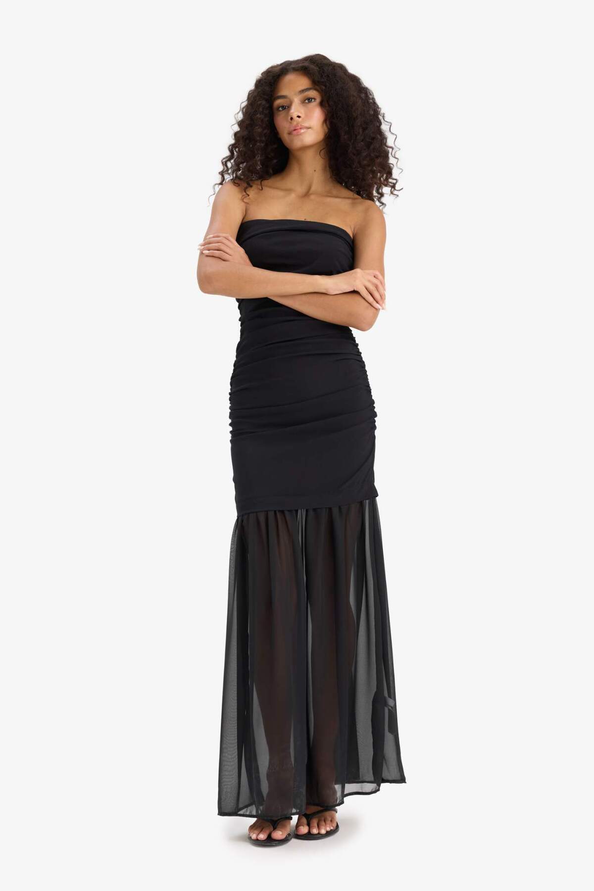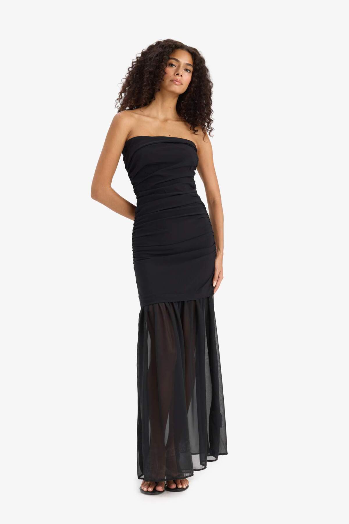 Straplez Şifon Siyah Midi Elbise F7249AX25SM Straplez Şifon Siyah Midi Elbise F7249AX25SM 40