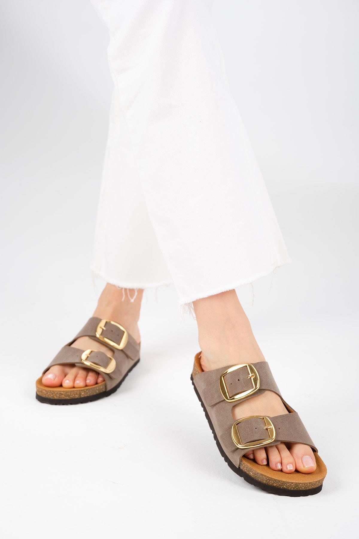 Ines Vizon Renk Ortopedik Mantar Tabanlı Terlik Ines Vizon Renk Ortopedik Mantar Tabanlı Terlik 01616S 42
