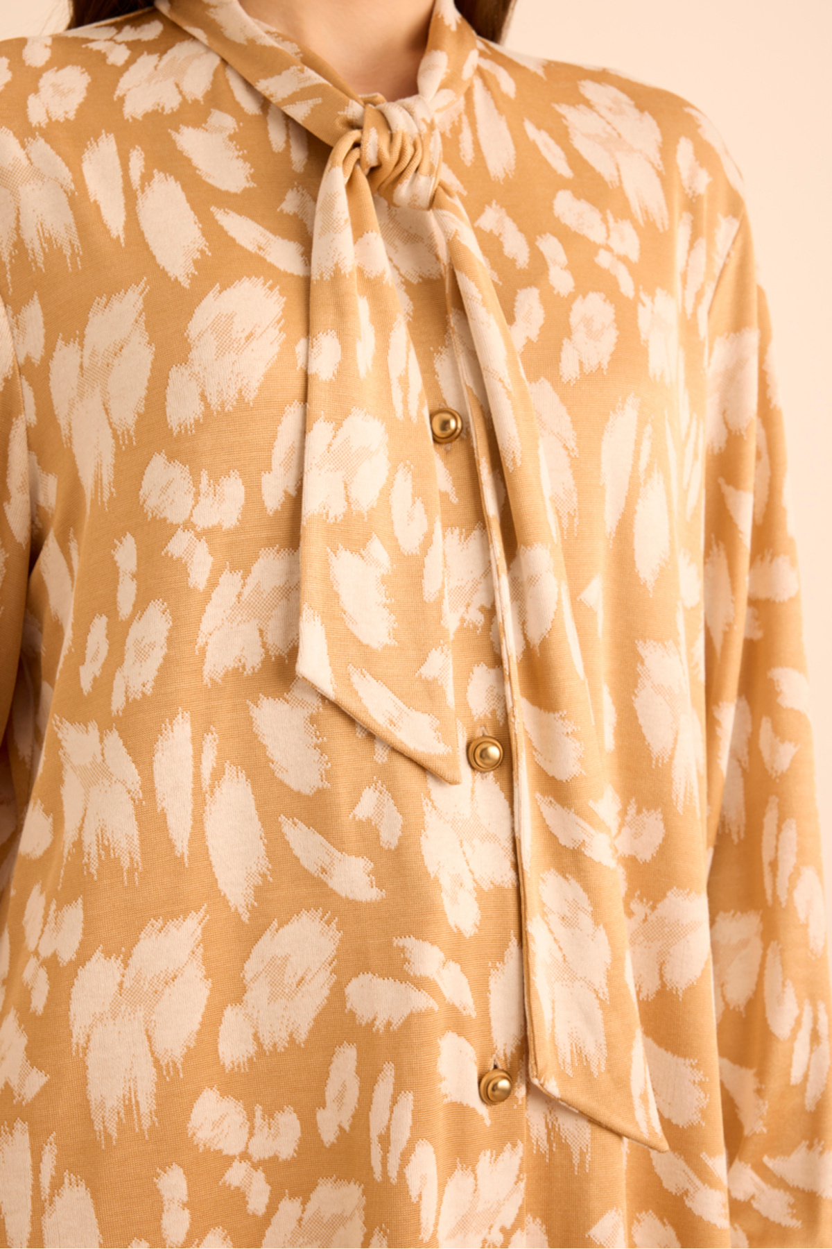 Jakar Desenli Gold Viscon Düğmeli Tunik Jakar Desenli Gold Viscon Düğmeli Tunik 25SS04412111 L