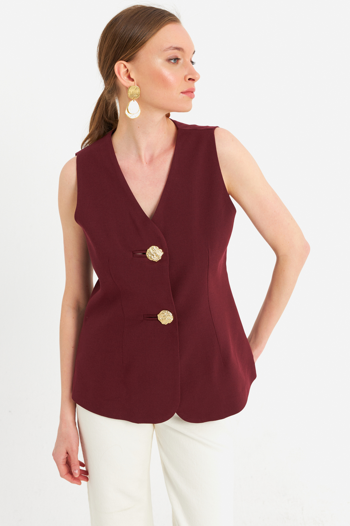 Yakası Düğme Detaylı Blazer Yelek Ceket Yakası Düğme Detaylı Blazer Yelek Ceket kaseylk XL
