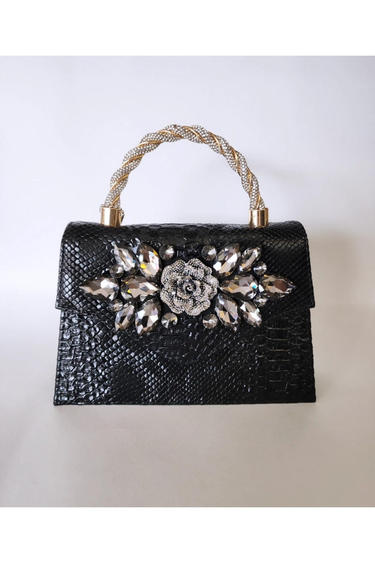 Gümüş Taş İşlemeli Rose Desenli Abiye Çanta Gümüş Taş İşlemeli Rose Desenli Abiye Çanta 131410